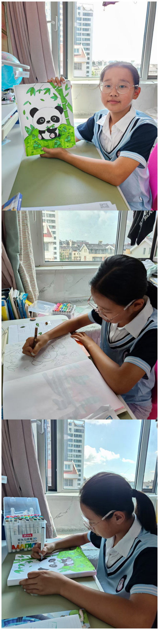 熊猫的一举一动都充满了萌趣,学生以熊猫为题材,充分发挥个人特长,用五彩画笔捕捉熊猫的灵动瞬间。无论是熊猫啃竹的憨态、打滚的俏皮,还是依偎竹林的悠然,都可以通过线条与色彩细细勾勒,让笔下的熊猫跃然纸上,绽放独特的萌趣光彩。
