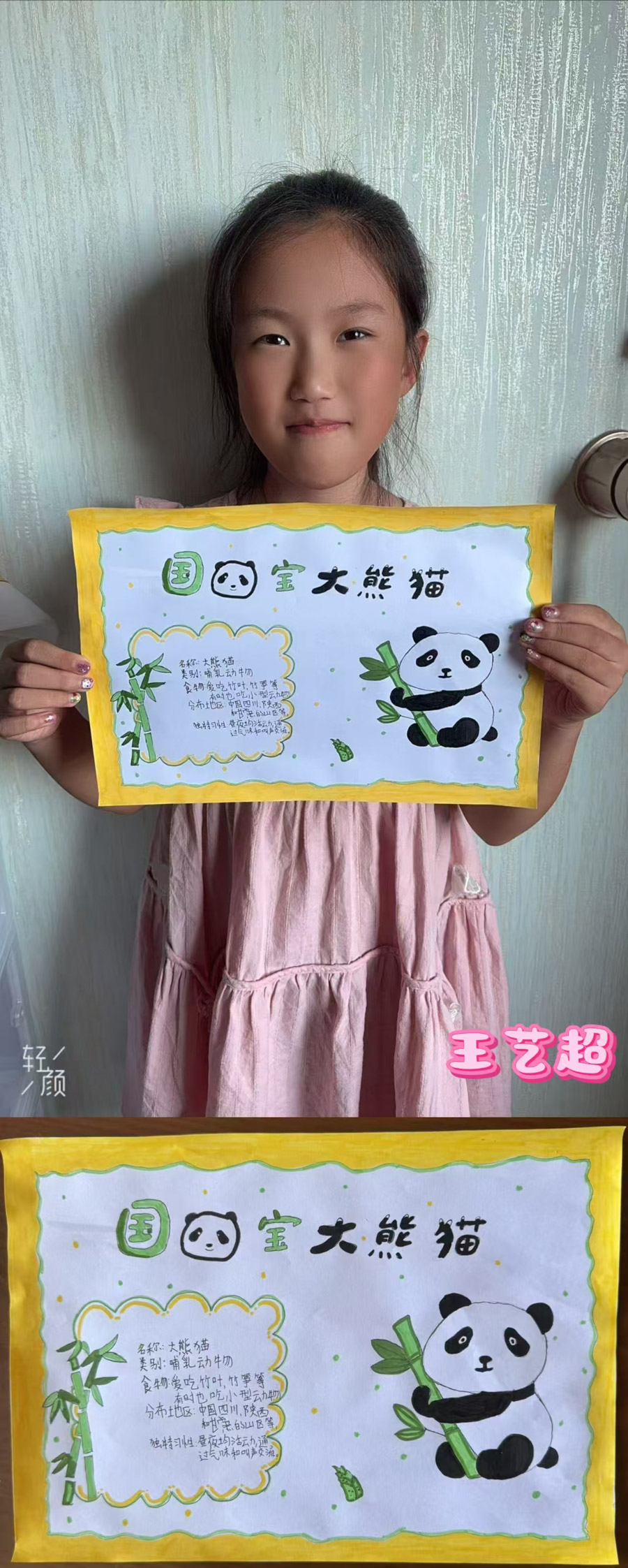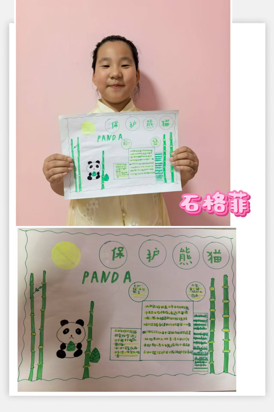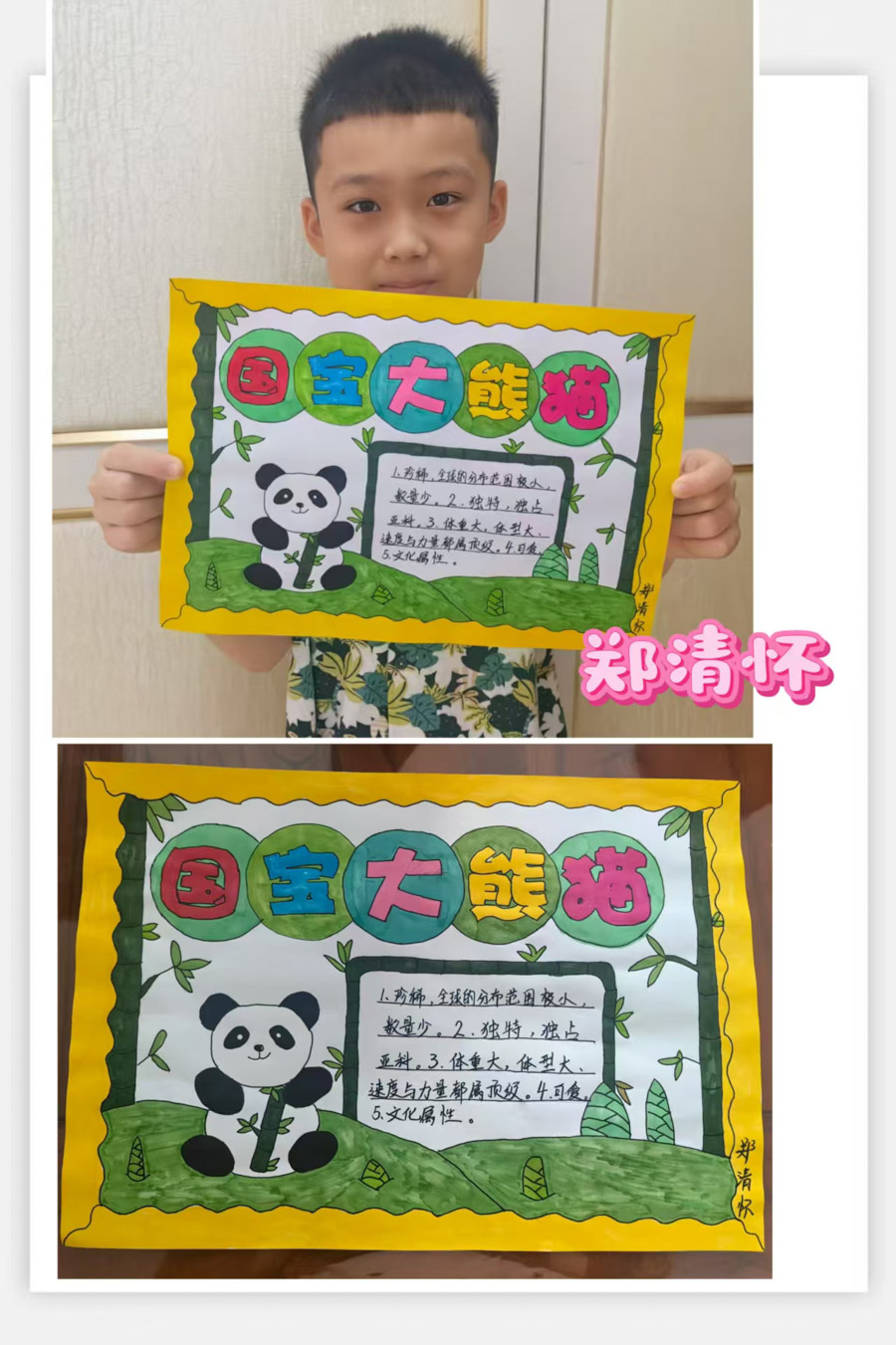 有的同学,通过手抄报的形式,为大家介绍了国宝大熊猫,下面我们来看看成果展示吧: