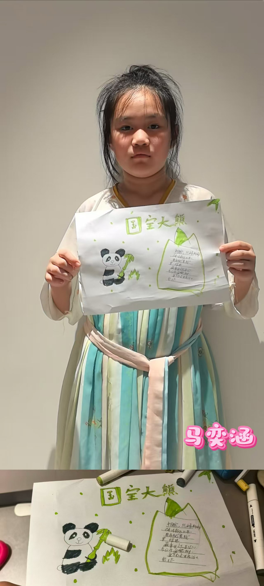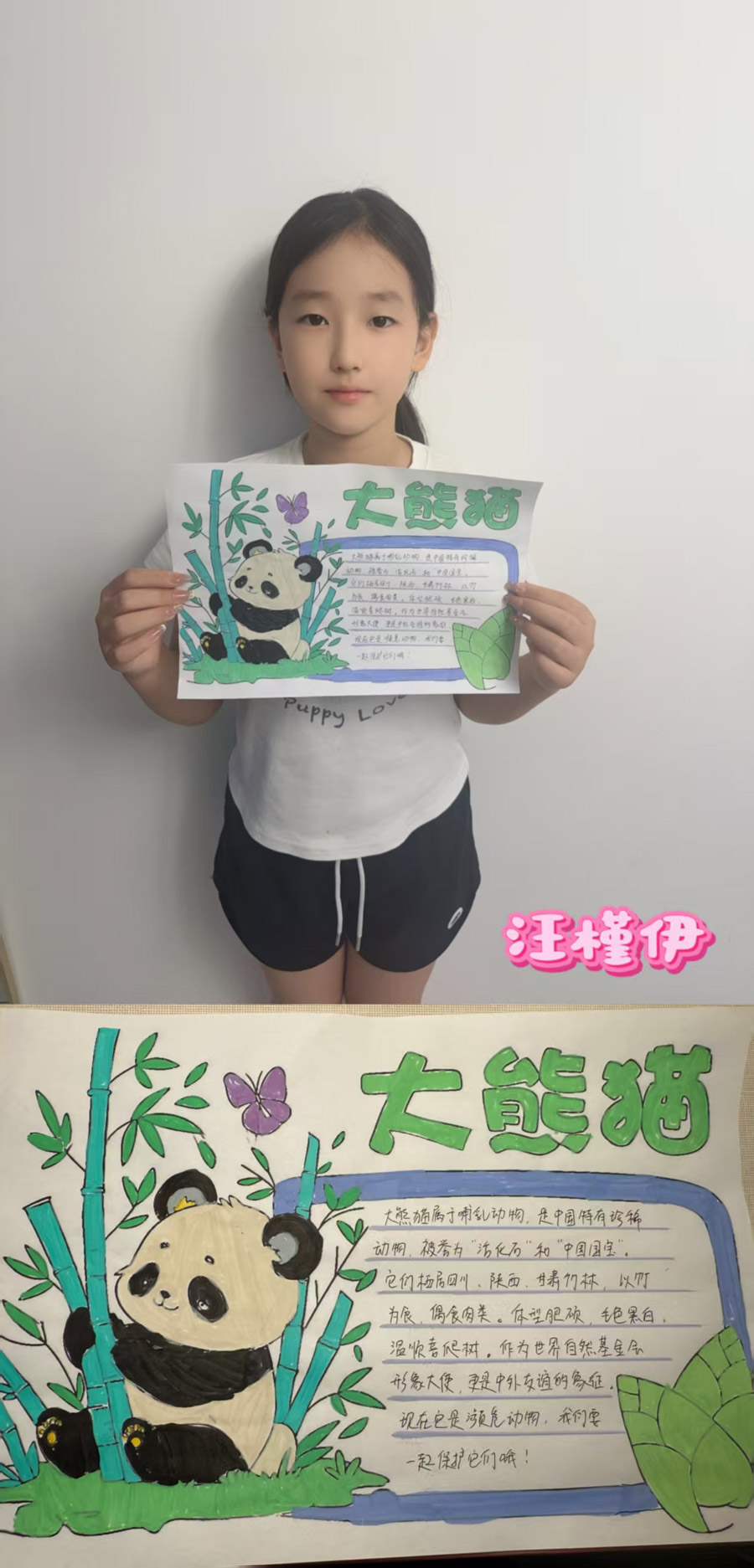 有的同学,通过自己的了解,用视频讲解、手抄版的方式,告诉我们如何才能更好的保护大熊猫,下面来看成果展示: