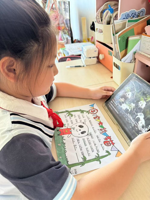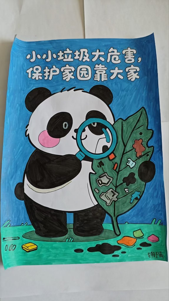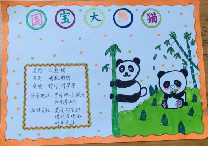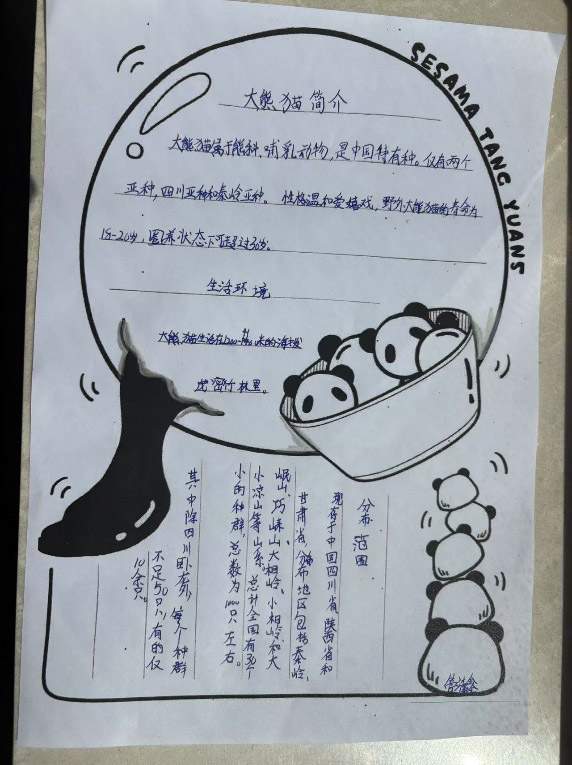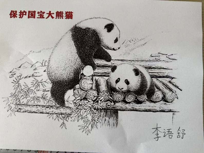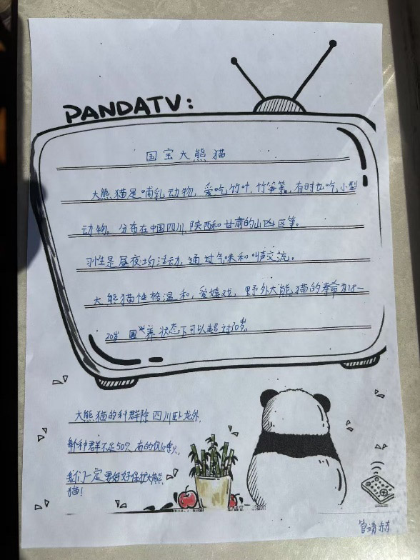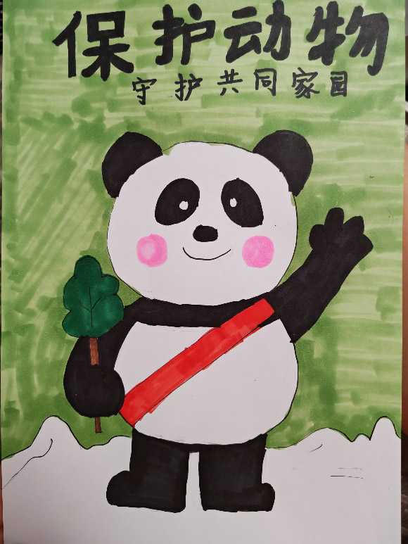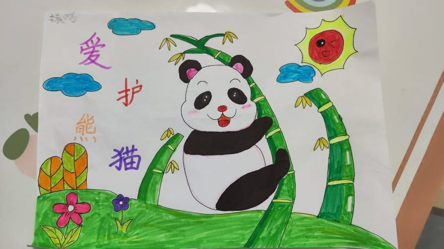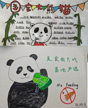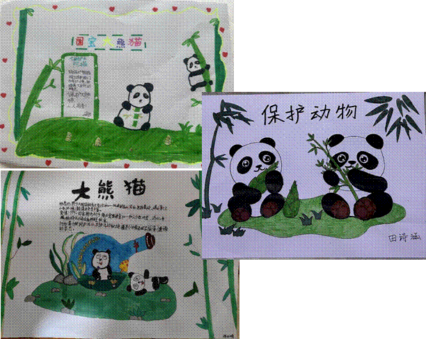 同学们积极行动,用绘画、文字表达了对国宝大熊猫的喜爱和保护的坚定决心!