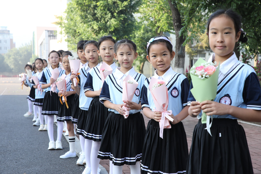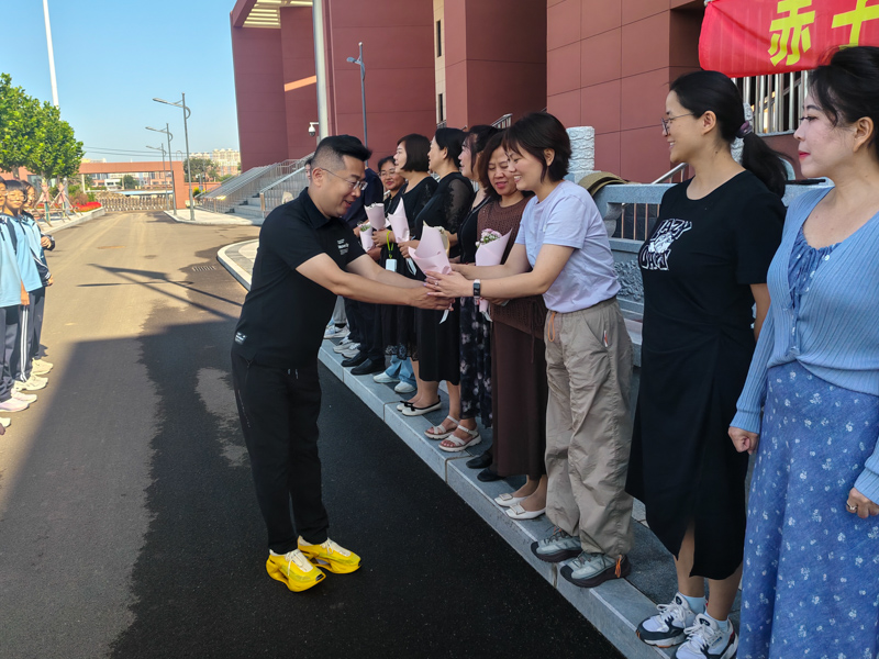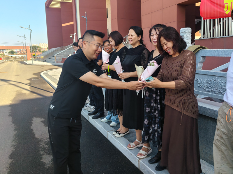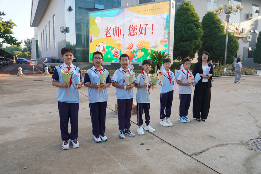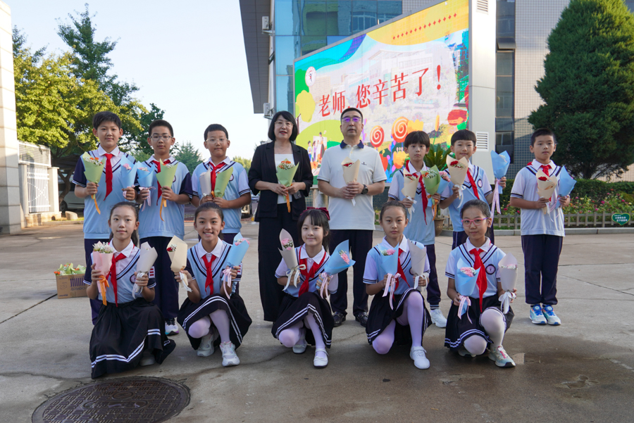 9月10日清晨,秋光正好,情满校园。校级领导、少先队员代表与学生代表为每一位老师献上鲜花和祝福。“老师,您辛苦了!”“祝您节日快乐!”声声问候伴随着灿烂笑脸,温暖了每一位教师的心田,校园里洋溢着浓浓的师生情谊。