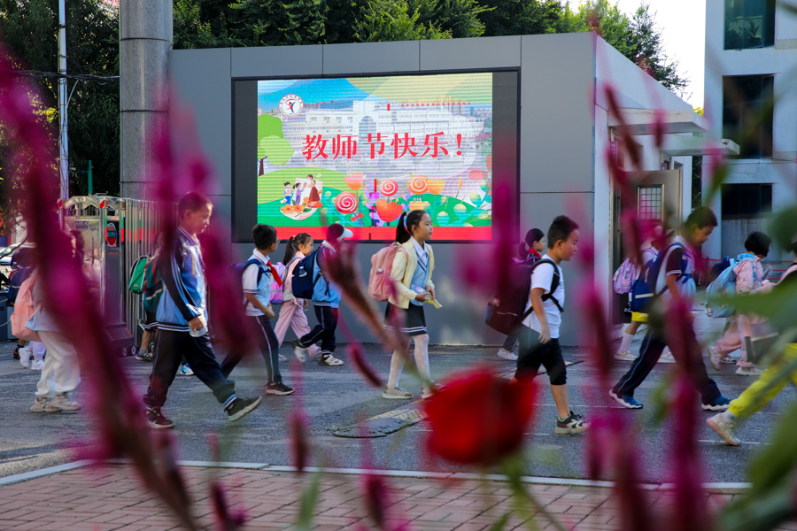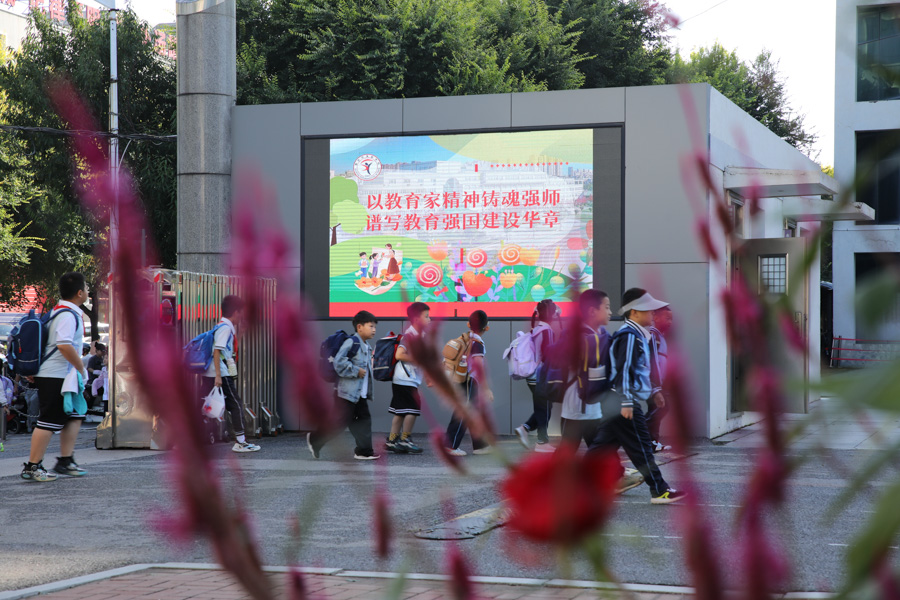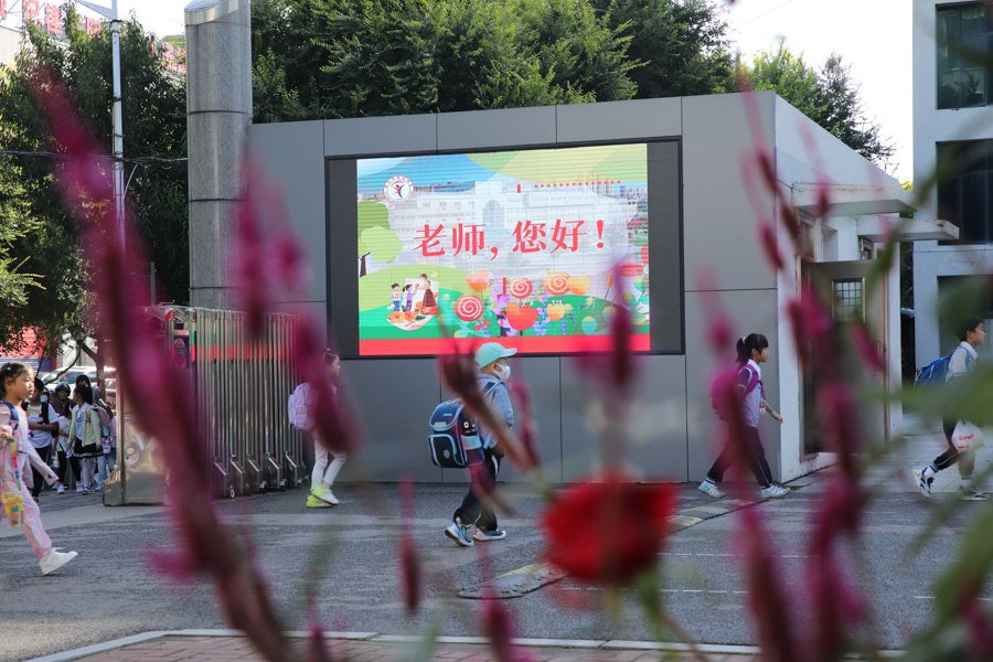 日暖风和,师恩永驻。学校电子屏亮起“老师,您好!”“教师节快乐!”“感恩有您”等暖心祝福语。明亮的祝福在阳光下熠熠生辉,成为校园里一道独特的风景线。这场特别的"白昼亮灯"活动,以最直接的方式表达了对教师的崇高敬意。