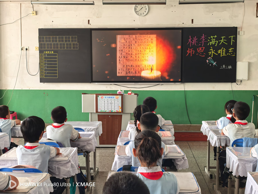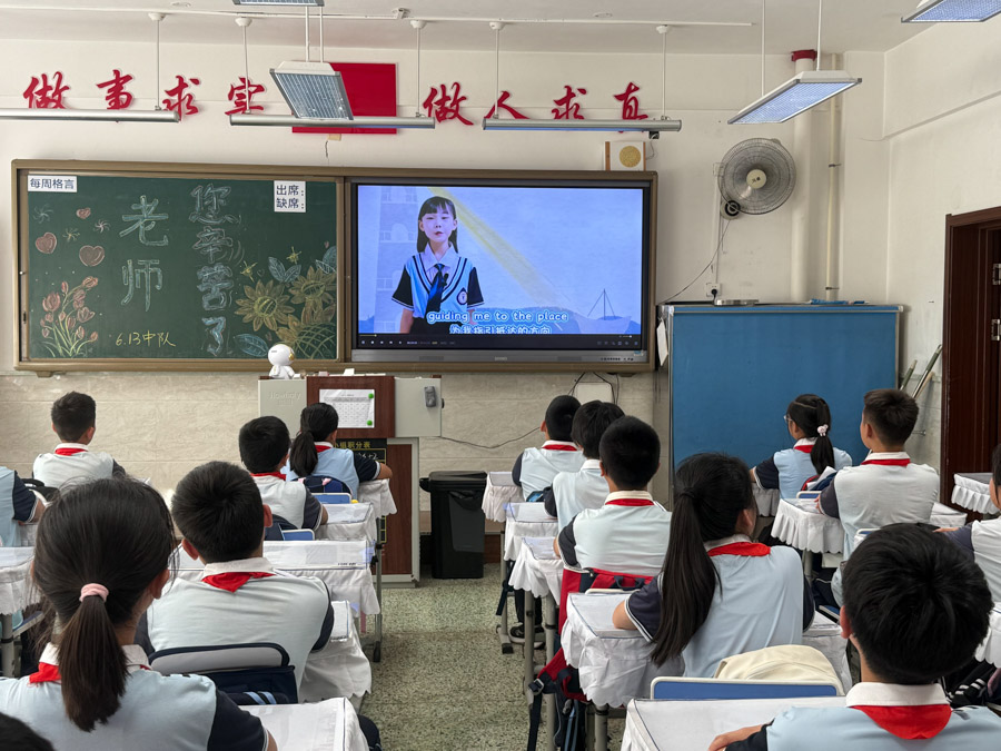 9月9日下午,小学部“桃李满天下,师恩永难忘”主题班会在各班级温情开展。各班组织观看了“老师,我想悄悄对你说”和“我与老师的故事”征集活动优秀作品,孩子们真挚的话语和动人的故事让现场充满温馨。红领巾广播站的小主播们通过深情的诗朗诵《老师,您是一颗会发光的星星》等节目,用声音传递感恩,字字句句饱含对老师辛勤付出的感激之情。