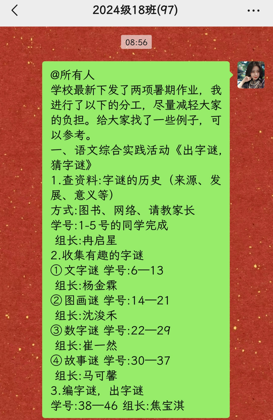 冉启星妈妈:“非常感谢学校这次举办的实践活动。在这个过程中,启星学会了与同学协力合作完成任务,也增长了独立思考的能力。希望学校和老师还能继续推行类似丰富多彩的的寒暑假活动。”