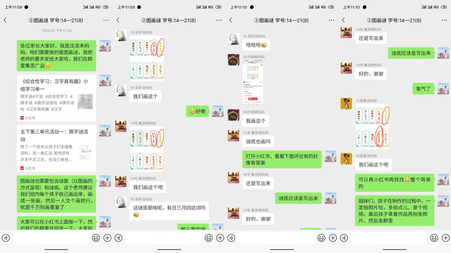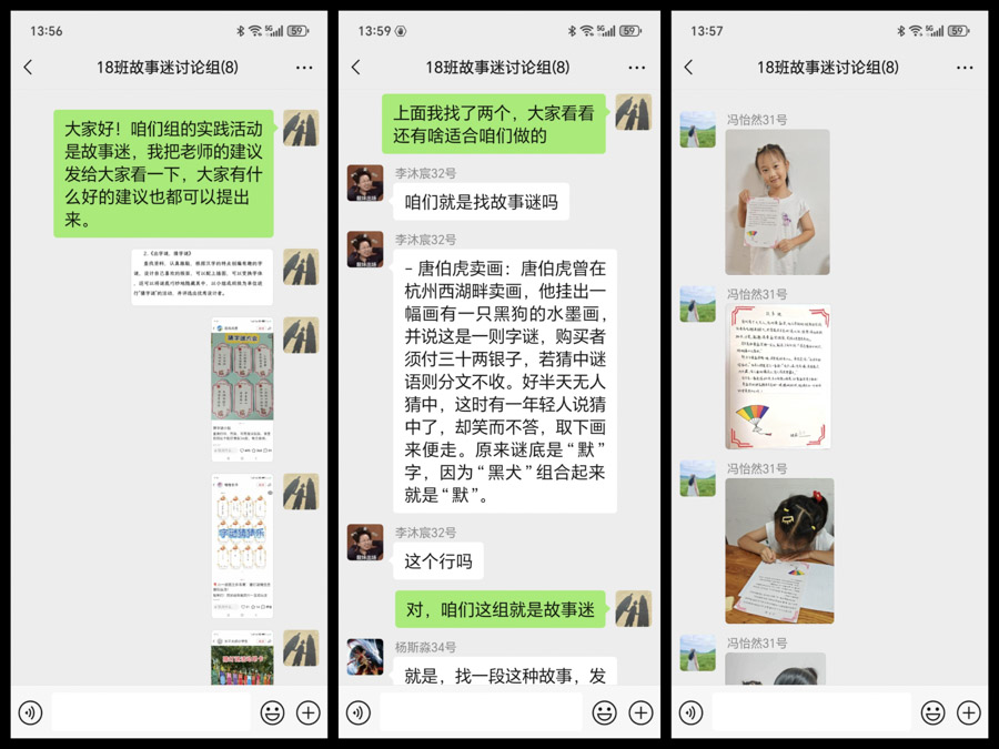 他们拿出彩色卡纸,用稚嫩的小手一笔一划认真地写下自己精心准备的字谜,在学中玩,在玩中学,真是有趣极了!