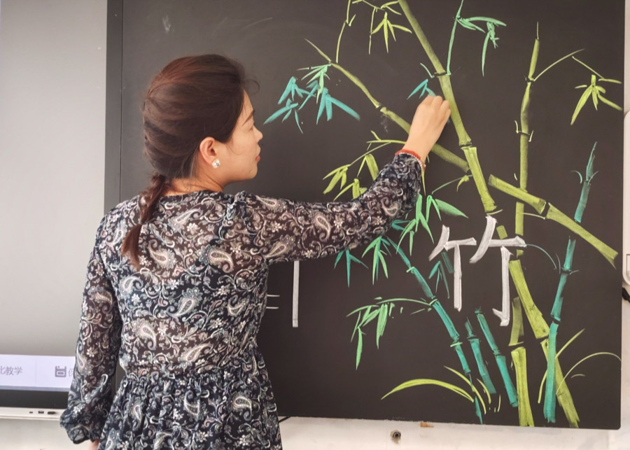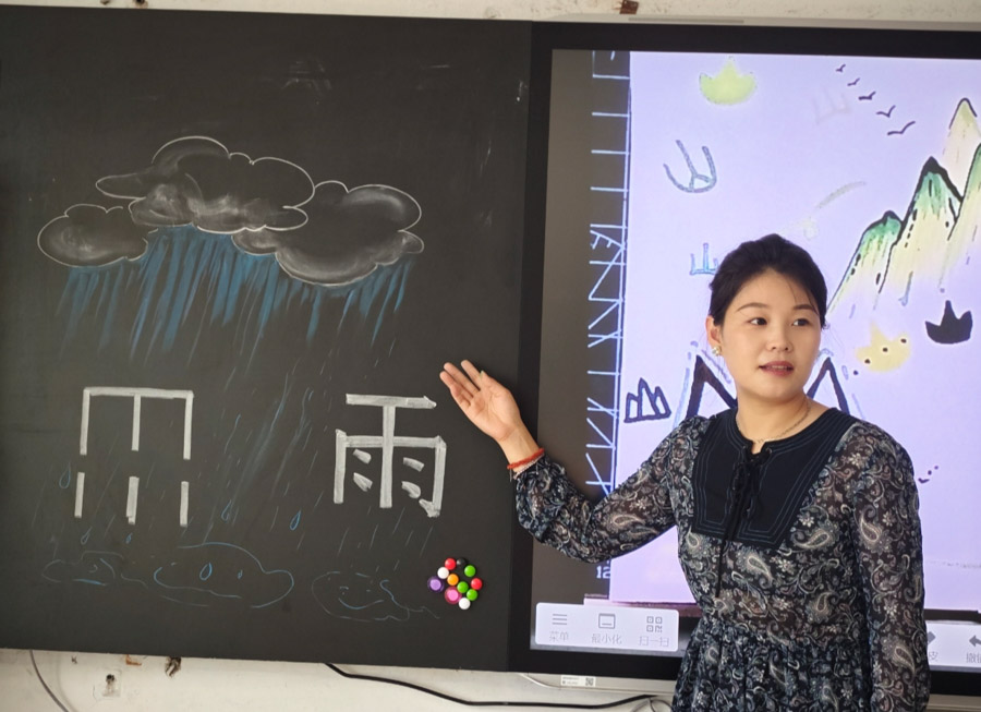 在语文老师的带领下,全班一起猜字谜。看看谁的反应最快,知识量最广。美术杨老师也加入其中,用形象的图画提示谜底是什么。
