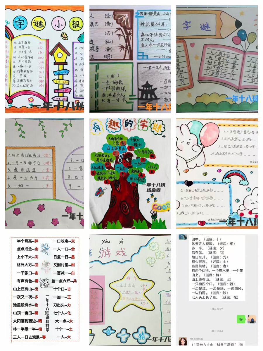 为了更好地激发一年级小朋友们的想象力、求知欲和识字兴趣,18班开展了一个有趣的语文学科综合实践活动——出字谜,猜字谜。