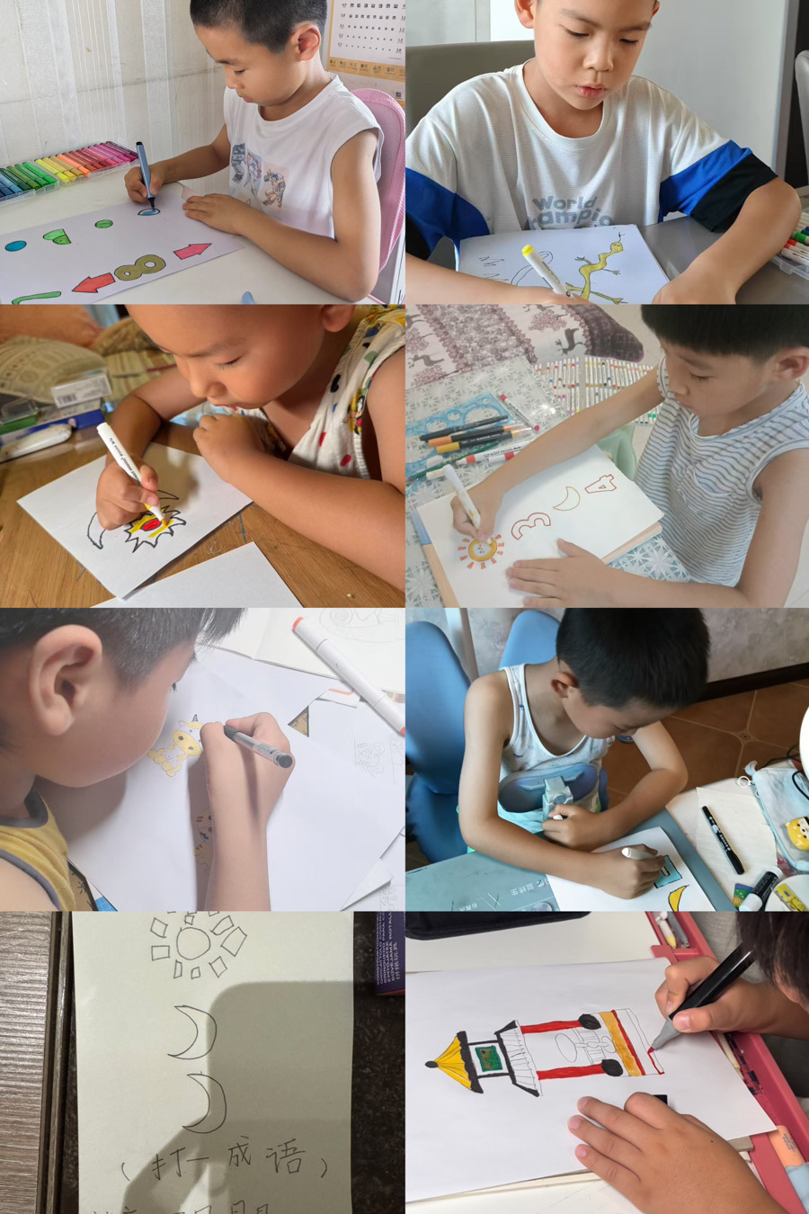在猜出了“秋”字的秘密后,顾老师为同学们准备了更多好玩的字谜,激发同学们的好奇心和探索精神。同学们可以选择自己喜欢的汉字,编写属于自己的字谜,并通过绘画的方式将这个字生动形象地表达出来。