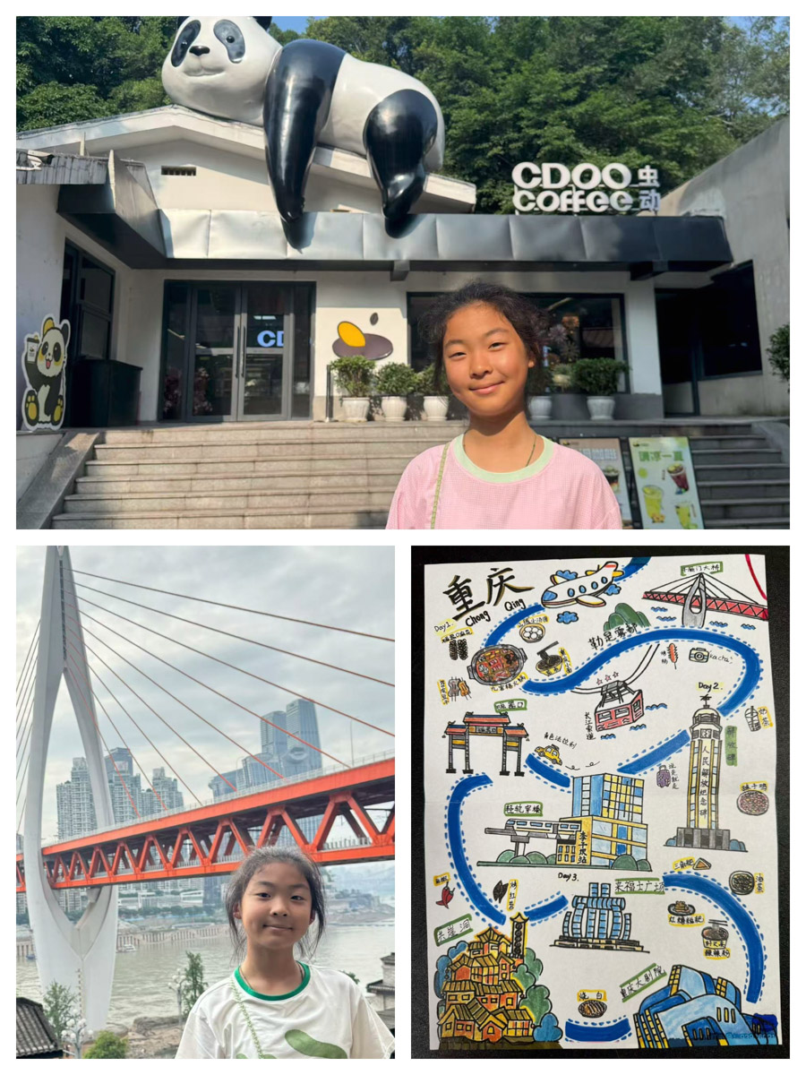 实地考察组在家长的带领下,踏上了充满未知与惊喜的探索之旅。他们的足迹遍布大江南北,在重庆千厮门大桥如一道钢铁长虹横跨两江,尽显现代都市的活力。行至贺州,姑婆山的绿意便铺天盖地涌来,山间瀑布飞流直下,真切感受着南国山水的灵秀。上海外滩的万国建筑群静静矗立在黄浦江畔,好像诉说着这座城市百年的风云变幻。