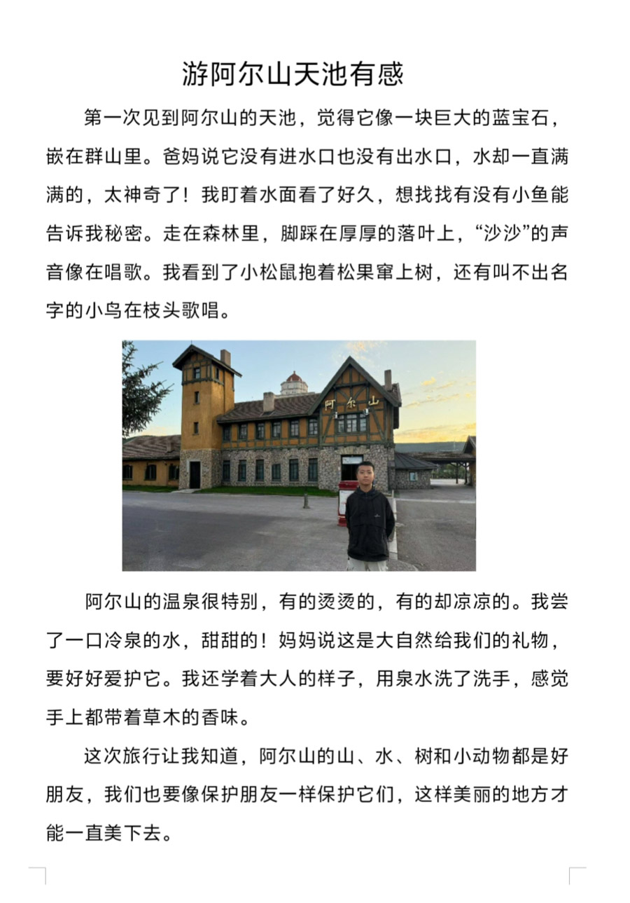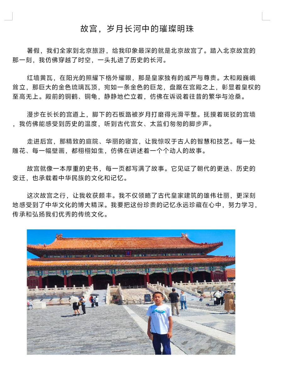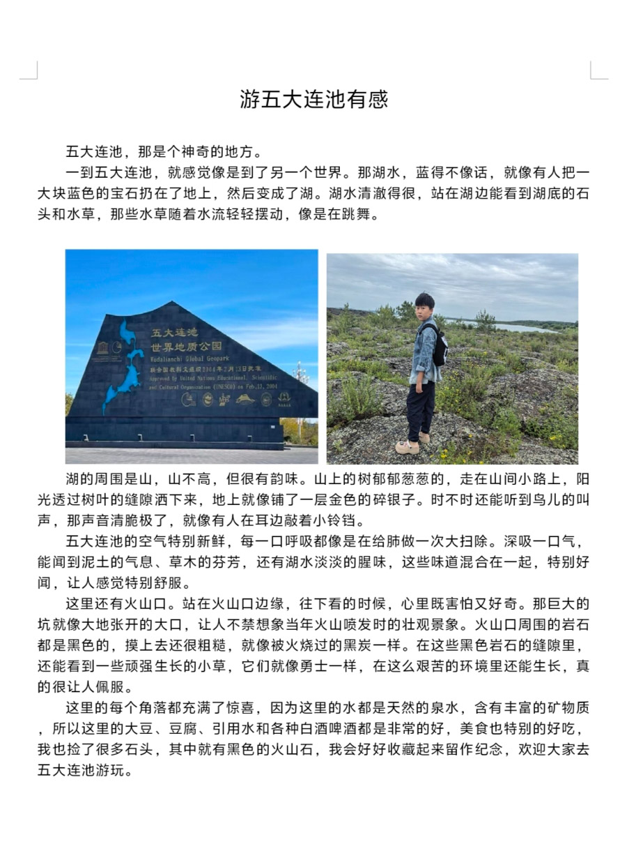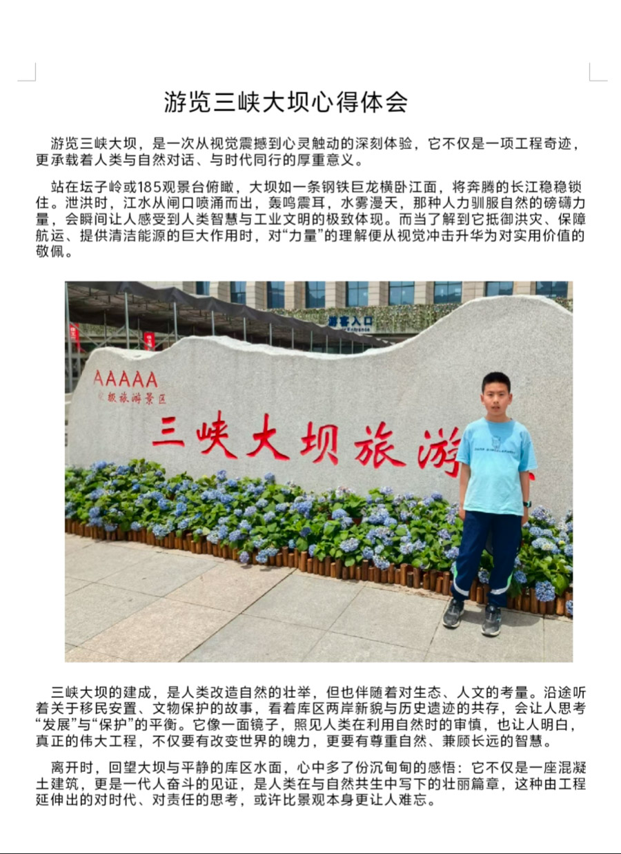 “游遍中国”项目化学习,让同学们对中华文化的理解愈发深切,三峡大坝感受到了现代工程与自然江河的壮阔交响,惊叹于人类改造山河的智慧与魄力;走进阿尔山的林海雪原,触摸火山岩的粗粝肌理,在天池的澄澈倒影里,读懂地质变迁的岁月密码,领略北国生态与自然奇观的鬼斧神工;漫步北京故宫,每一块金砖、每一扇朱门,都沉淀着数百年的王朝故事与匠心传承。每处文化印记、每段历史传奇,都催生出对民族瑰宝的敬慕与热爱,民族自豪感悄然漫溢心间。