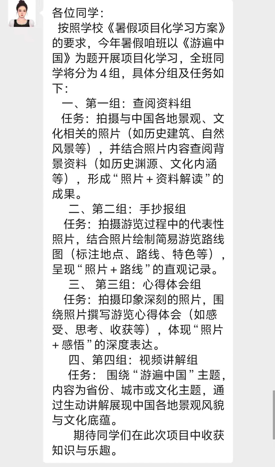 此次项目化学习中,同学们踊跃报名参与。在舒老师的悉心指导下,大家共同商议确定了“游遍中国”项目化学习方案,并明确了各成员的具体分工。