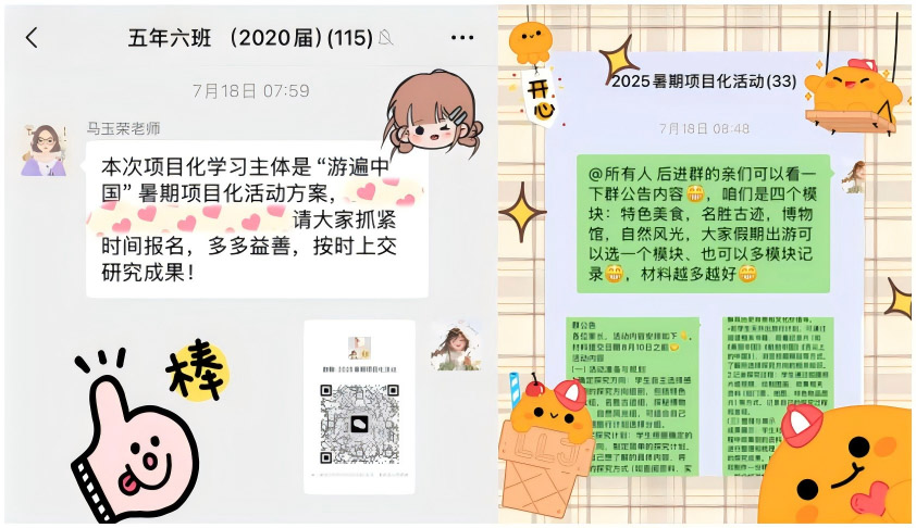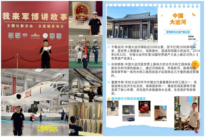 “游遍中国” 暑期项目化活动,旨在让学生借助暑期时光,以自主探究与实践体验相结合的方式,走进中国的不同地域,感受各地的自然景观、民俗文化、历史底蕴等独特魅力。通过这一活动,不仅能丰富学生的暑期生活,更能培养他们的自主学习能力、探究精神以及对祖国的热爱之情,让学生在轻松愉快的氛围中实现知识的积累与能力的提升。