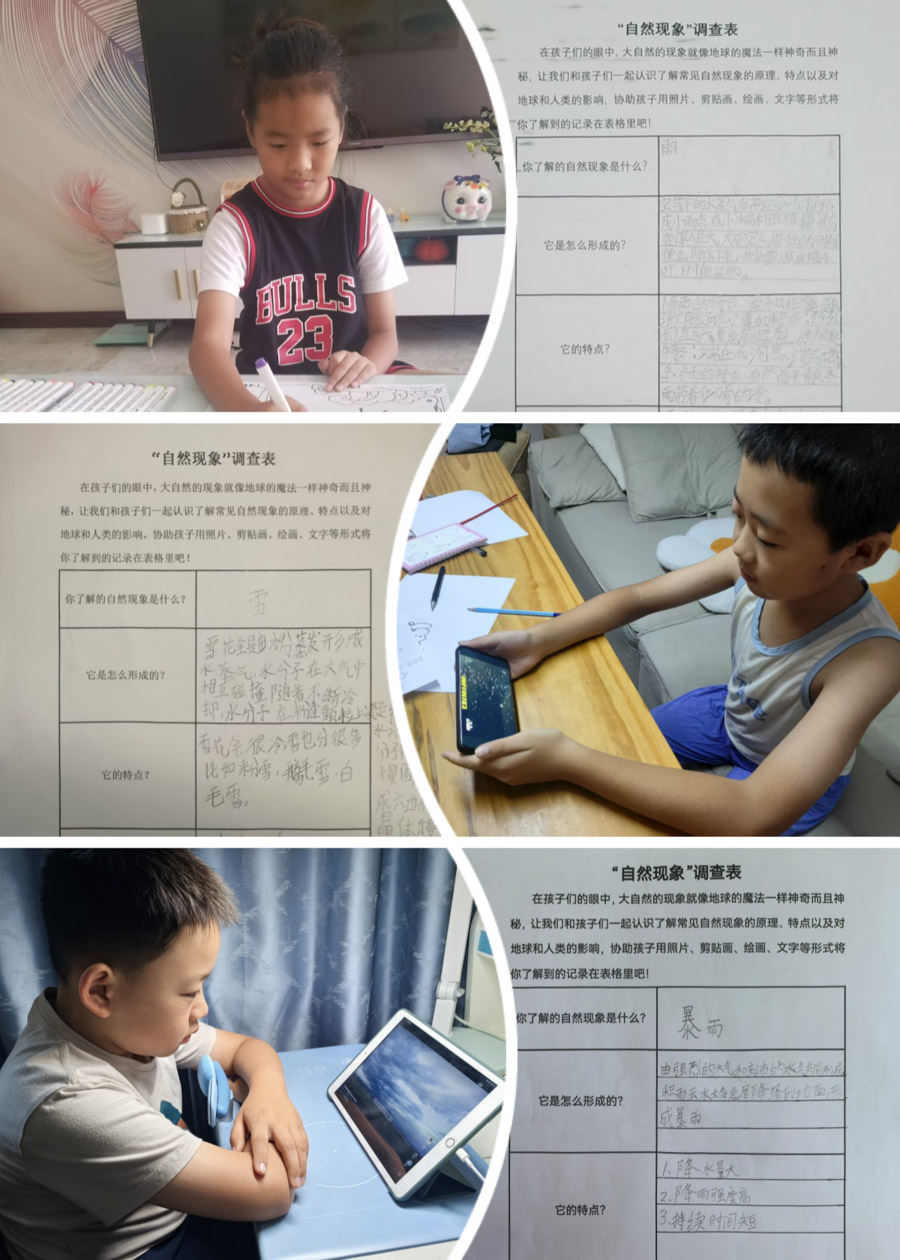 在班主任徐老师带领组织下,同学们群策群力、集思广益,纷纷开始行动,最后确定分别从动物世界、植物世界、自然现象、风景秘境四个方面全方位探索了解大自然。