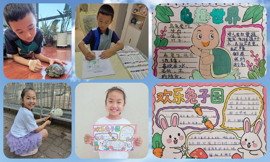 动物世界方面共有11位同学参与本次活动,在徐老师的建议与带领下,大家分别调查研究了8种小动物,包括小狗、兔子、梅花鹿、乌龟、蜗牛、蜻蜓、守宫、蝴蝶等,对它们的外貌特征、生活习性等进行了细致的观察研究并做了详细的记录。