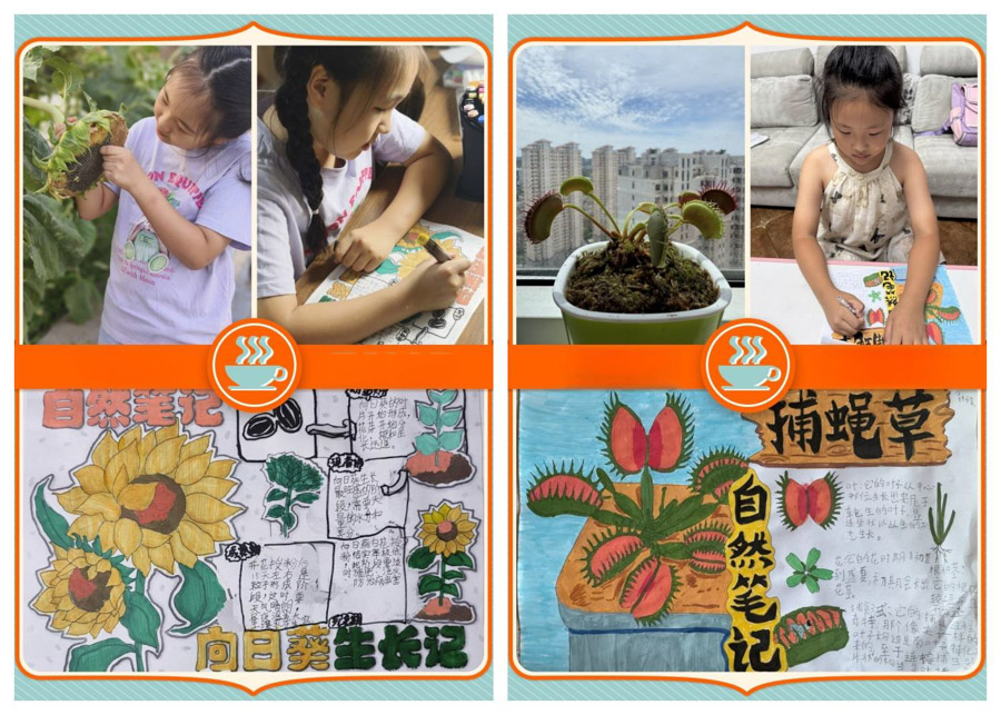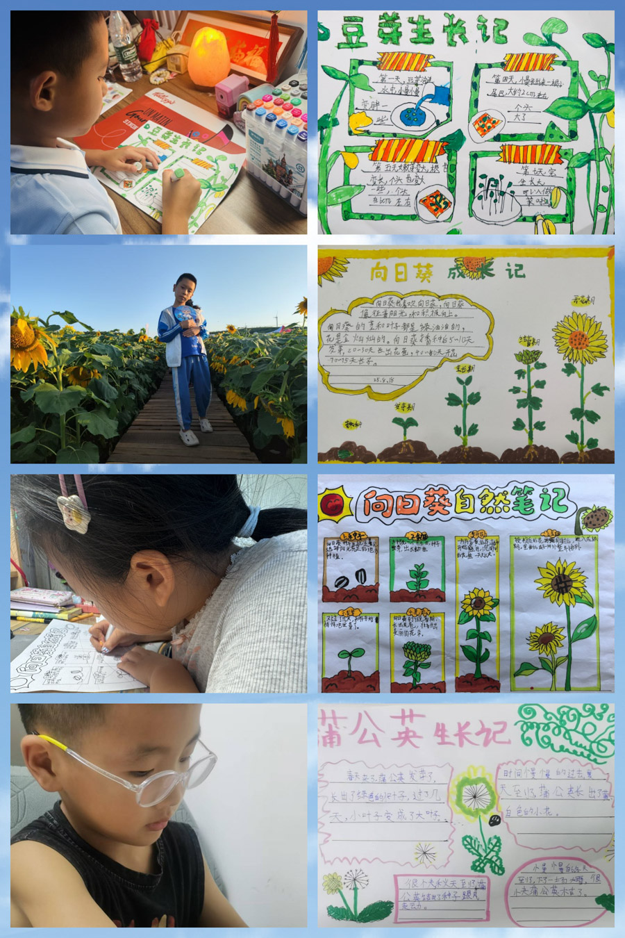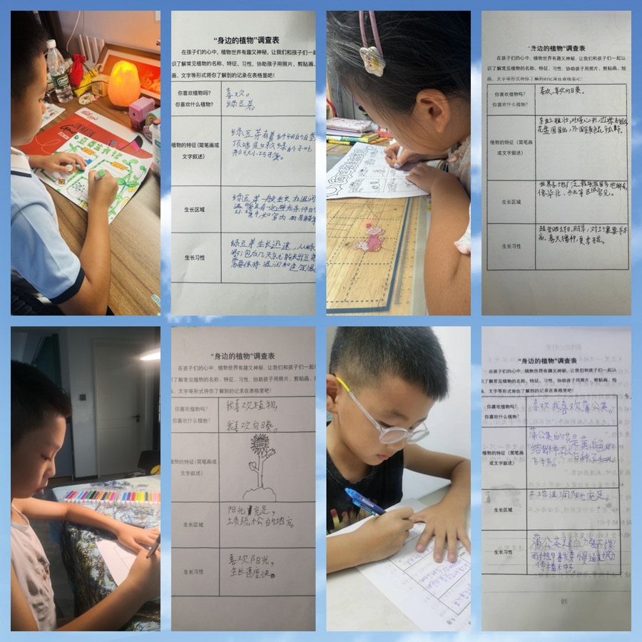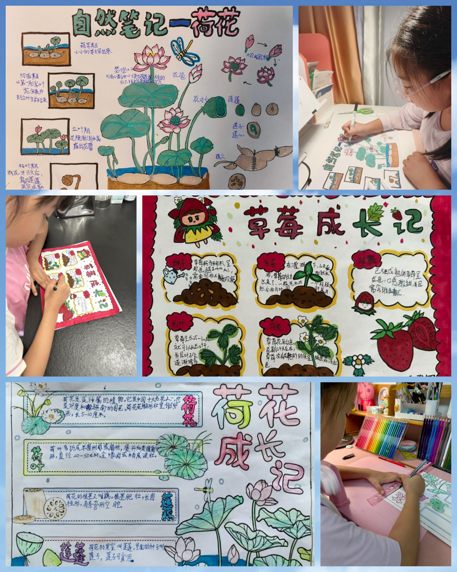 还有的探究植物分类、生长过程和对环境的适应能力。共有9位同学参与本次活动,在徐老师以及家长的支持下大家分别调查探究了6种植物,包括荷花、向日葵、绿豆、草莓、蒲公英、捕蝇草等,对它们的外貌特征、生长周期等进行了细致的观察研究并做了详细的记录。