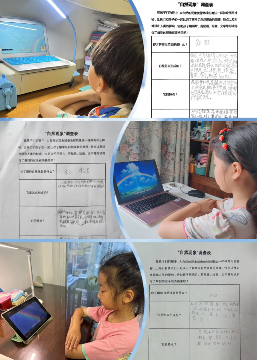 通过这些研究视角,同学们对大自然有了初步的认识。 过程中同学们也学会了观察、思考与表达,同时也开阔了视野,积累了大量的知识,产生了浓厚的学习兴趣,为将来的语文学习打下了良好的基础。