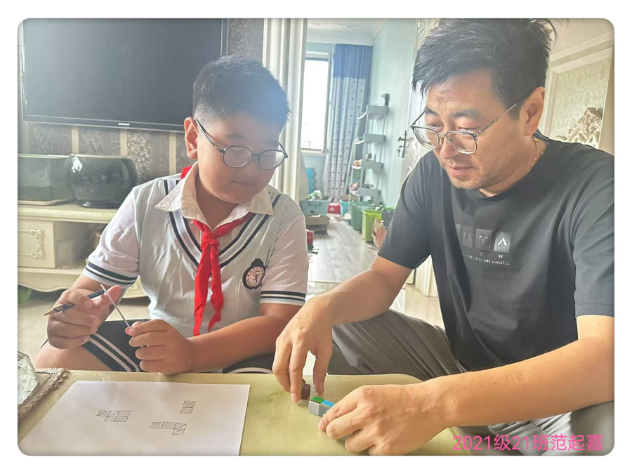 2.家长评价:过去,陪伴孩子学习数学仅限于完成习题,但这次在制作手册的过程中,孩子自发地询问‘如何表达得更清晰’以及‘怎样才能画得更美观’,主动地将语文和美术知识融入其中。面对难题时,我们共同查阅资料、尝试解决,这不仅加深了知识的理解,也使我们的亲子关系更加紧密。显然,‘运用知识解决问题’是最佳的学习方法。