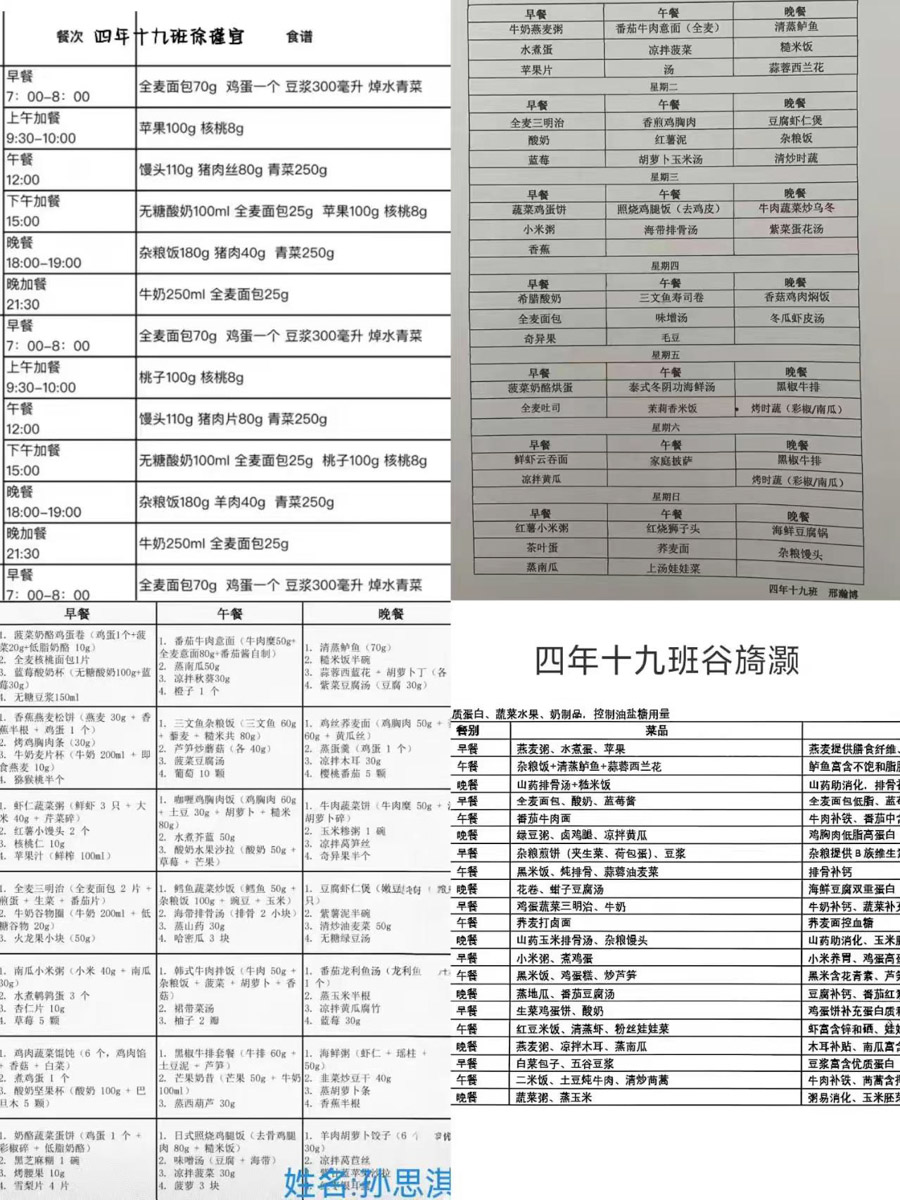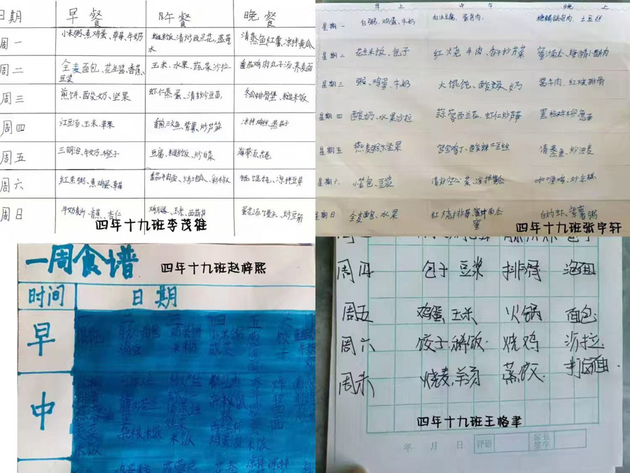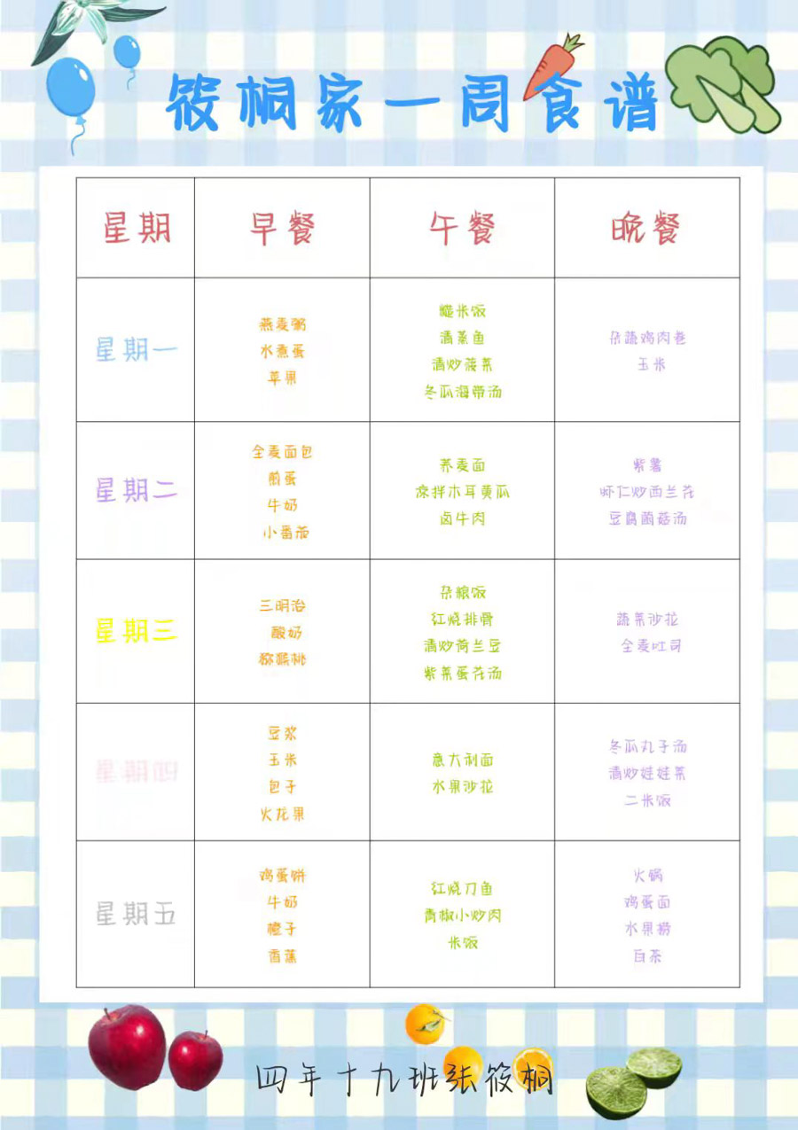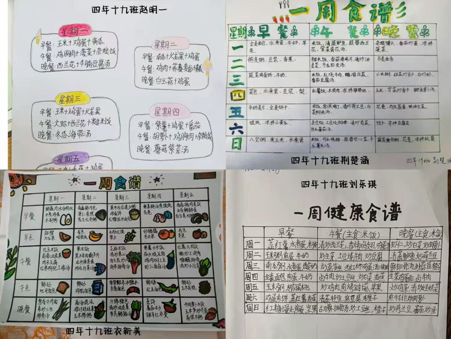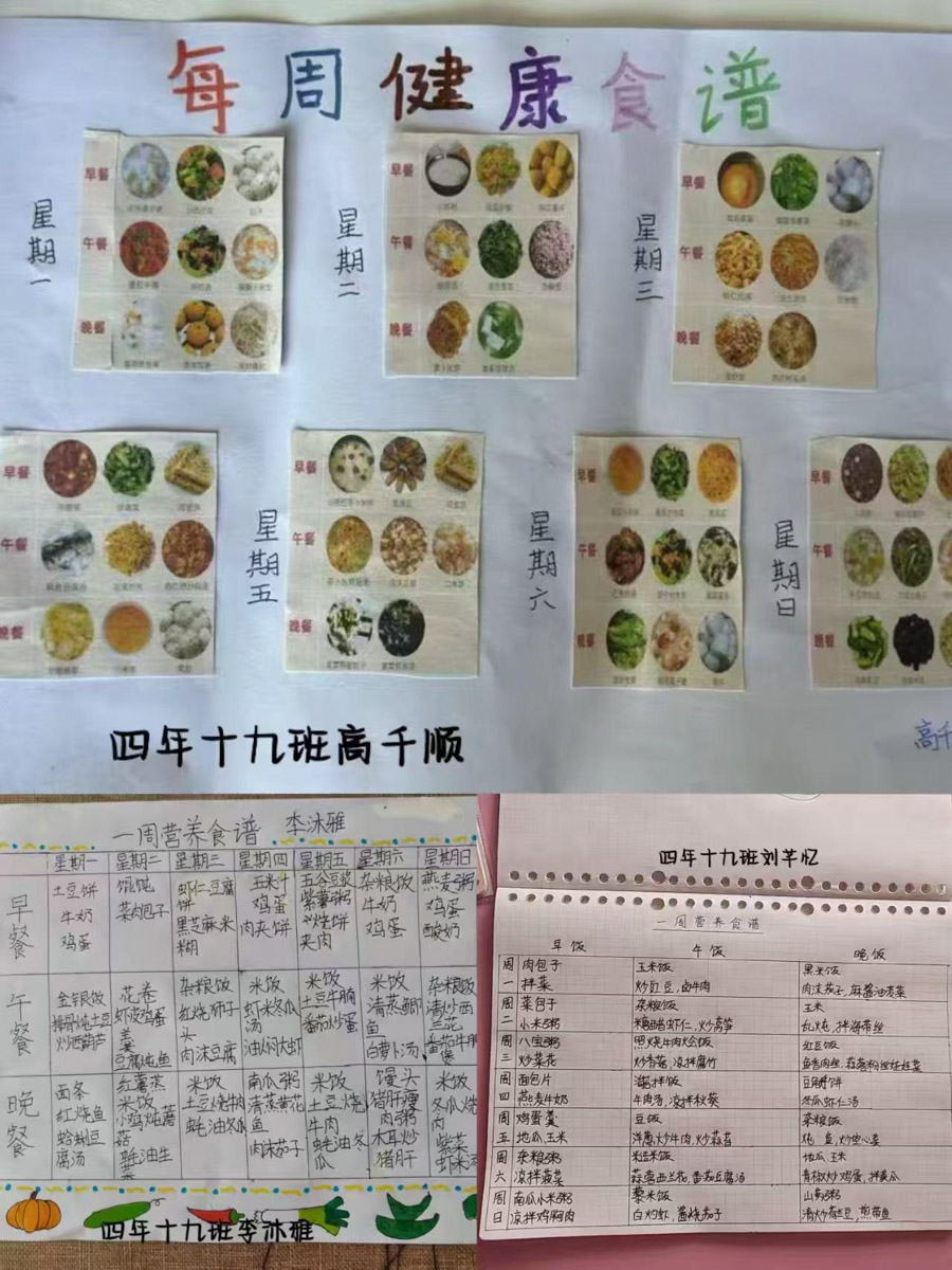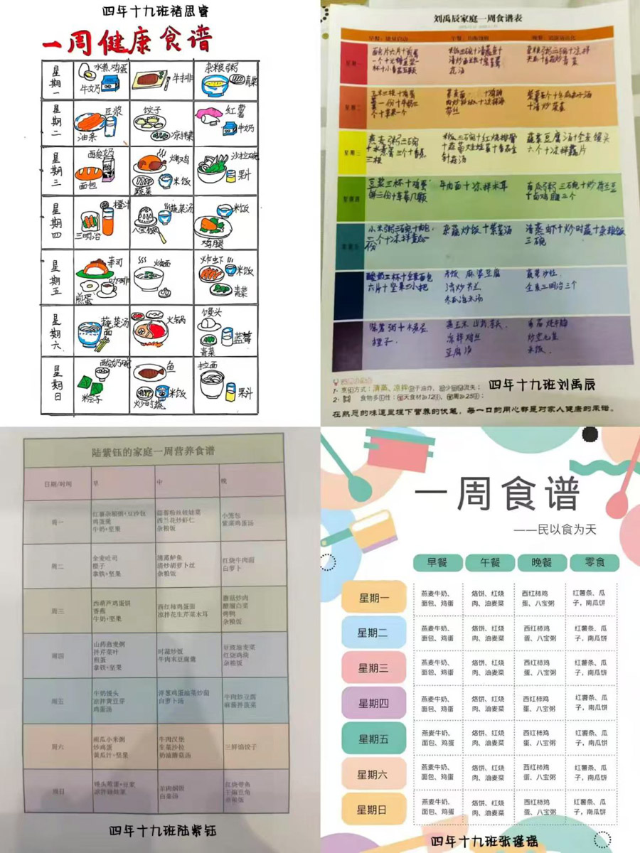 3.同学们根据所学知识,查阅资料和家人调查等为家人设计一份一周的营养食谱。