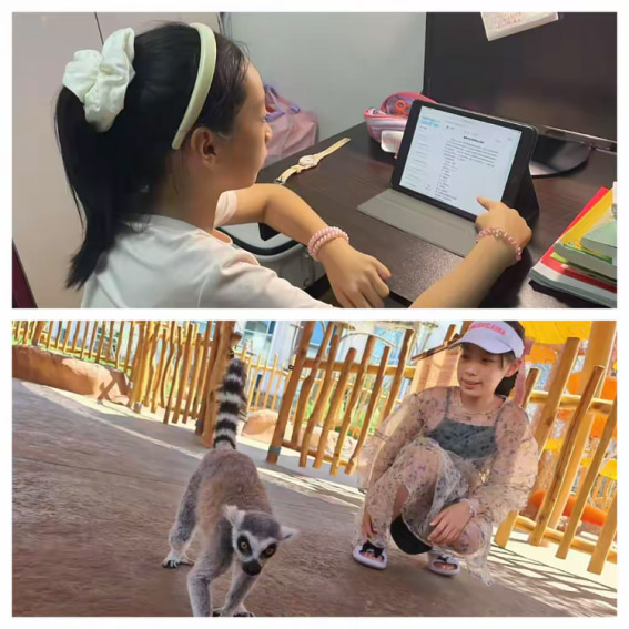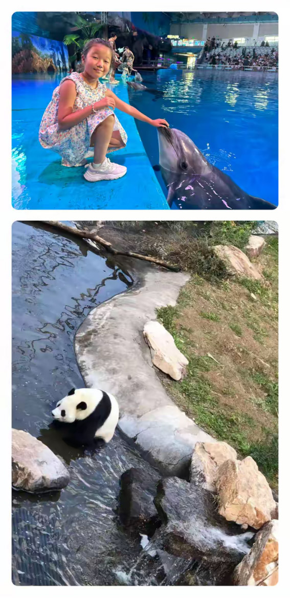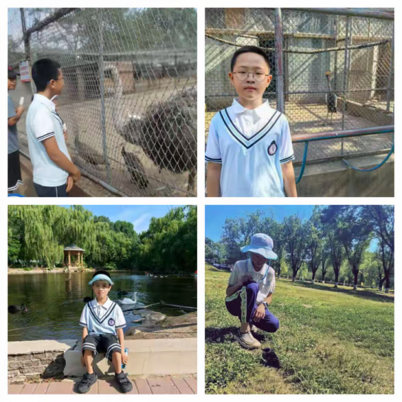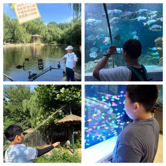 李一帆、王岳洋、谢政诺同学在动物园和水族馆参观。