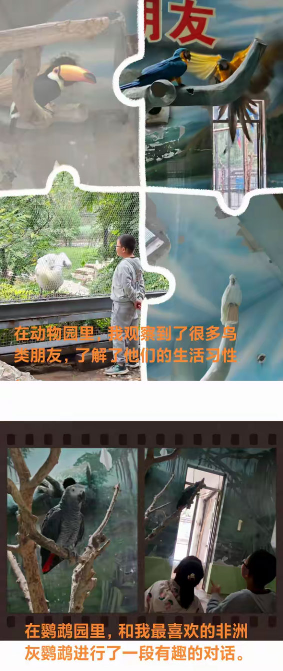 他和家人一起参观动物园,同鹦鹉对话。在爸爸的帮助下,了解到鸟类是人类科技的无声导师。比如,鹦鹉脚抓的抓握技术,可以让机器人精准抓取不规则物体,革新仓储物流。