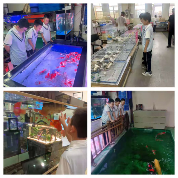 王润铎、上官逸宸、张铭哲同学结伴到花鸟鱼市“探秘”各种各样的鸟和鱼。