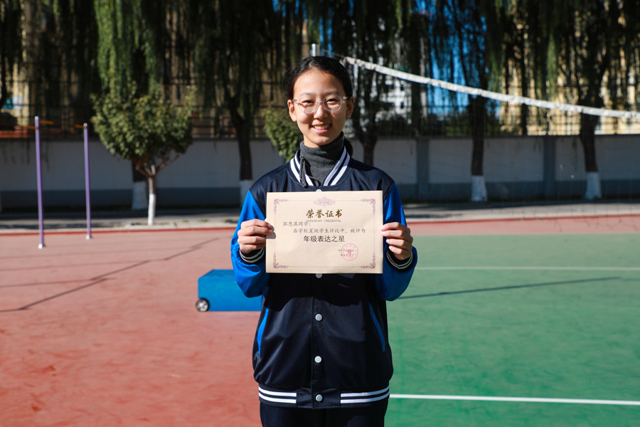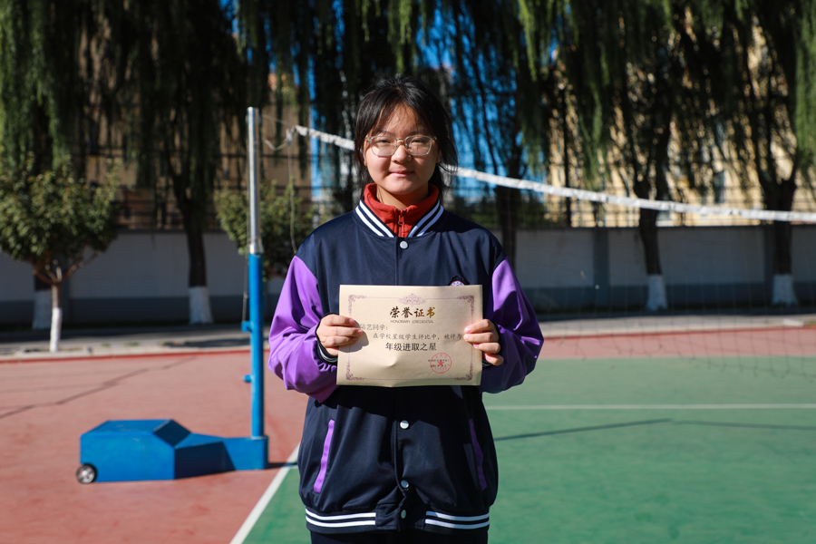 陆艺同学学习勤奋,热爱集体,团结同学,积极向上。身为班级干部能够认真完成老师交给的任务。少年应有鸿鹄志,当骑骏马踏平川,她以面对困难不退缩,遇到挑战敢尝试,取得成绩不自满的进取精神,把“进取”藏在每一次主动努力里,用实际行动彰显新时代青少年的进取精神。