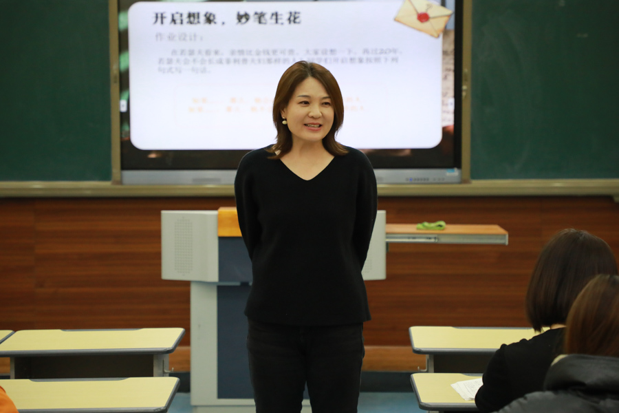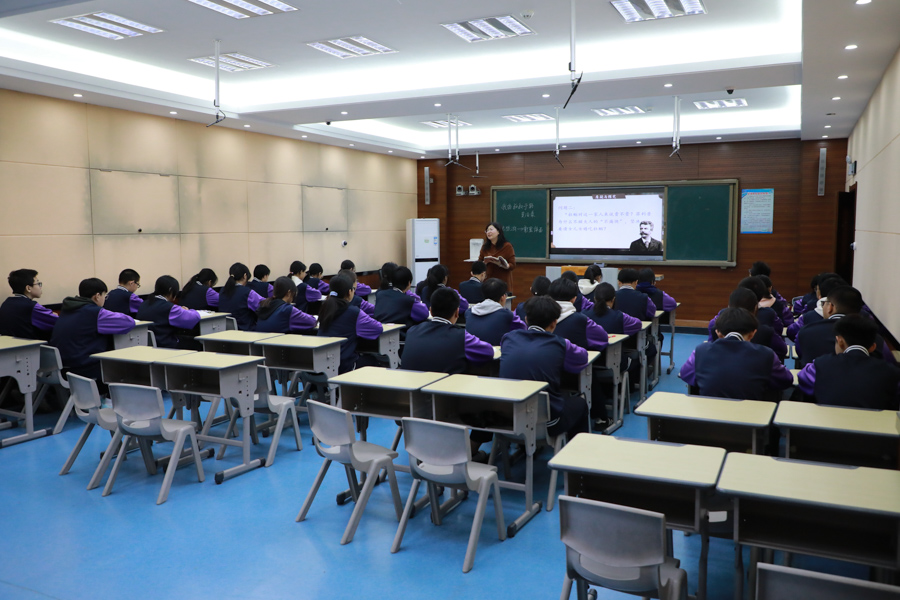 在准备阶段,九年部语文备课组长杨环老师带领本组两个小组的教师,听课、评课,并与两位教师就教学环节、课堂活动、跨学科学习等方面进行多轮研讨和打磨,反复推敲小说的核心表达,以及教学设计的逻辑梯度,最终呈现了两堂各具特色的语文课。