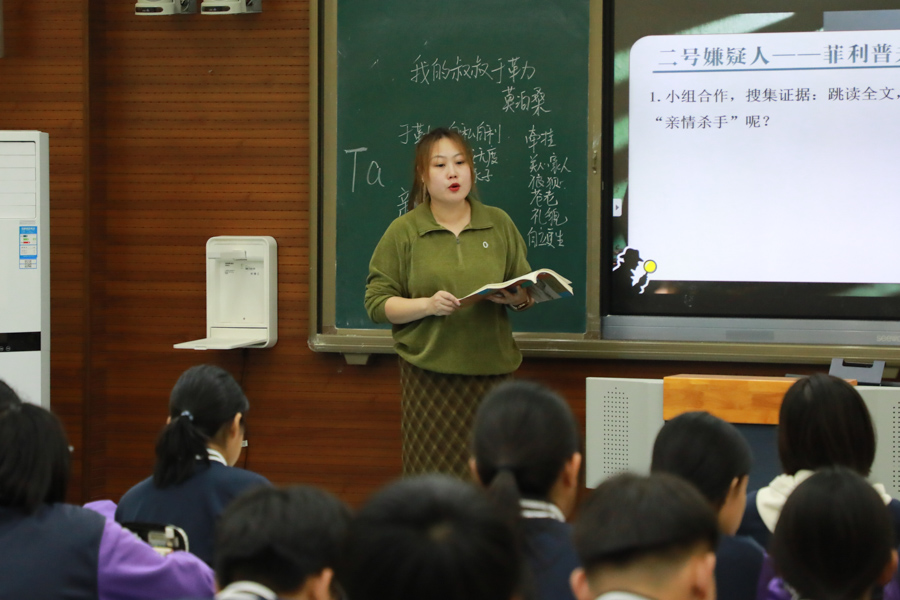 曹艳艳老师采用新颖的“剧本杀”形式,以“消失的Ta”作为导入,开展沉浸式课堂教学,巧妙融入多媒体资源,让学生化身“侦探”,寻找“杀死”亲情的凶手。学生围绕“嫌疑人一号:于勒”“嫌疑人二号:菲利普夫妇”展开证据搜集,分析其人物形象,在这一过程中认识到小人物的行为背后均有其复杂的动因,并非“杀死”亲情的真正凶手。随后,教师展示19世纪法国社会相关历史资料,引导学生达成共识:“杀死”亲情的真正凶手是资本主义制度下人与人之间的金钱关系,并通过作业设计回归人文,唤起学生对亲情的共鸣,实现语文学科“立德树人”的根本目标。