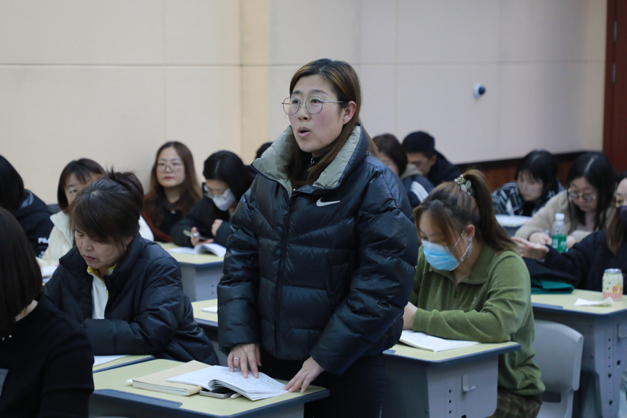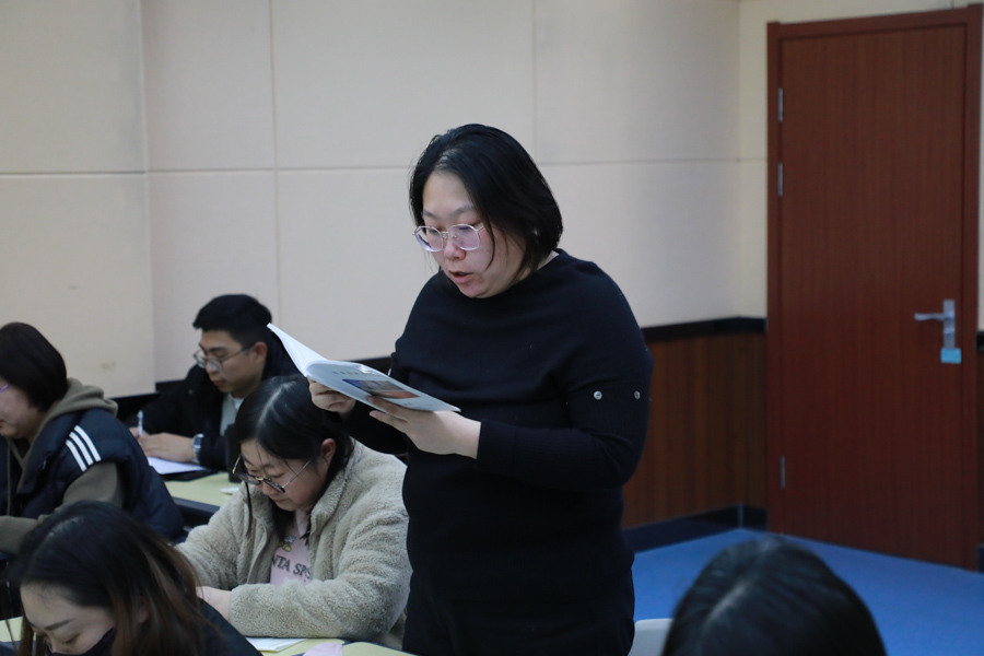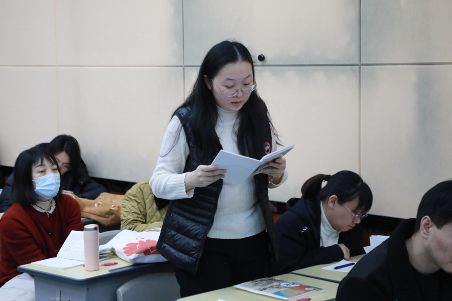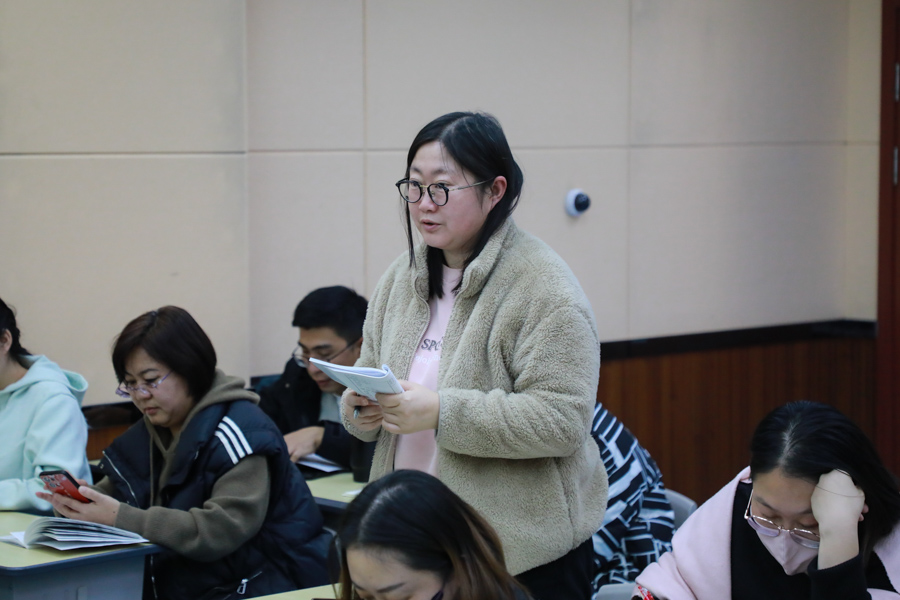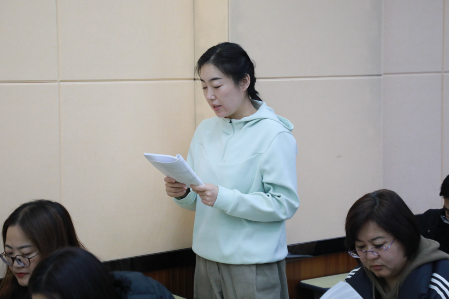 课后,语文教研组组长周慧君老师带领语文组教师进行了评课活动。大家一致认为,两位老师的教学设计新颖独特,围绕跨学科学习任务群,环环相扣,衔接自然流畅。杨洪雁老师设计的三个问题能够引领学生思维,让学生在问题的驱动下活跃起来,充分调动学生的积极性,启发学生由疑而思,由问题引出对文本的深度思考,从细节挖掘人性的温度。曹艳艳老师的构思新奇,采用学生喜闻乐见的“剧本杀”形式,富有新意,围绕“消失的亲情”这一主线,抽丝剥茧揭示小说主题,将教师为主导,学生为主体的教学理念体现得淋漓尽致,课堂取得事半功倍的效果。