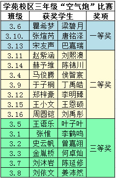 三年级(学苑校区)二等奖班级