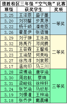 三年级(德胜校区)三等奖班级