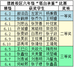 六年级(德胜校区)三等奖班级