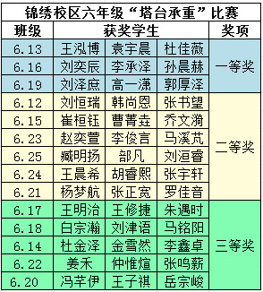 六年级(锦绣校区)三等奖班级