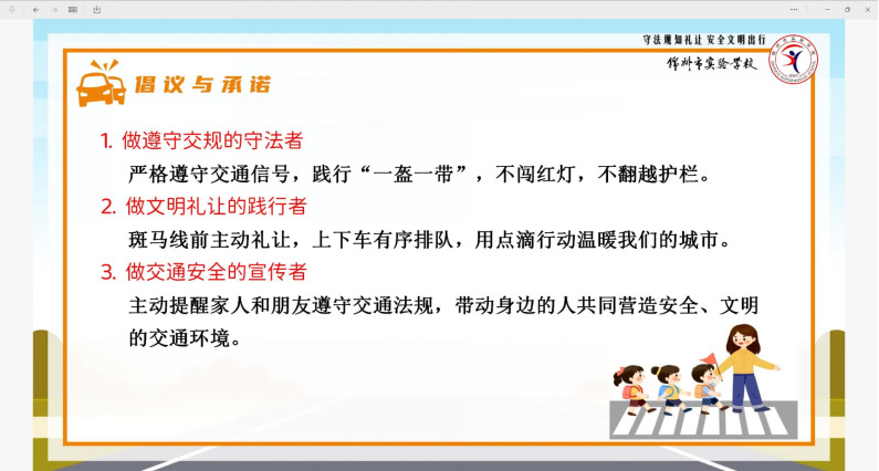 除了坚守法律底线,班会还强调了“知礼让”的人文精神。主持人指出,“礼让”是构建和谐、可预测交通环境的关键。无论是“车让人”的主动减速,还是“人让车”的快速通过与真诚致谢,都体现了相互尊重的人性温度,是更高层次的文明与安全。