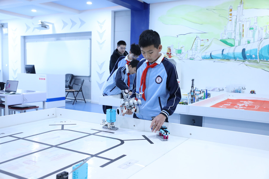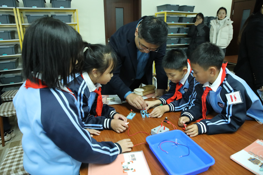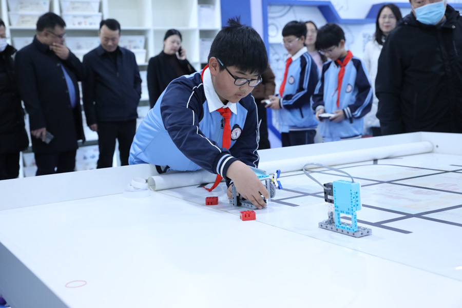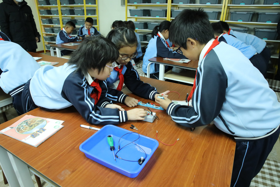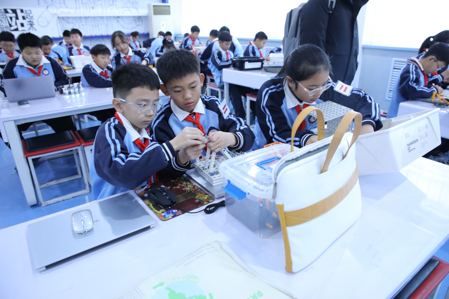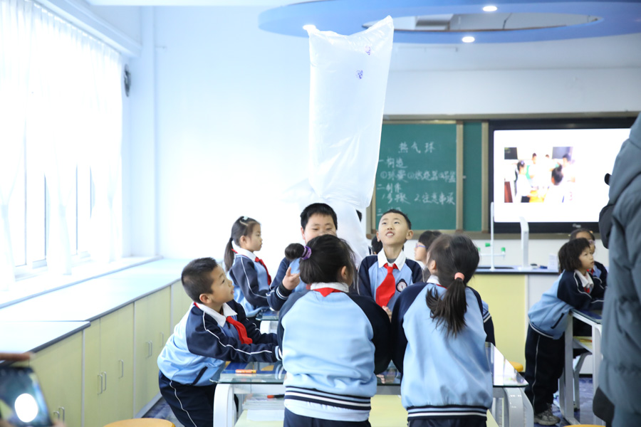 在课堂观摩环节,科学与信息科技课堂精彩纷呈。吴锦维、吕欣雨、杨玉彤三位老师分别带领三至五年级学生开展热气球制作、电路暗箱探究、大脑探秘等活动,在动手实践中渗透科学原理;夏京京老师引导四年级学生运用工具分析数据,完整经历计算思维过程,树立用数据支撑观点的意识;徐子涵老师带领机器人社团进行成果展示,各类科创比拼与精准操作,生动诠释了我校“致知课程”的实践成效。