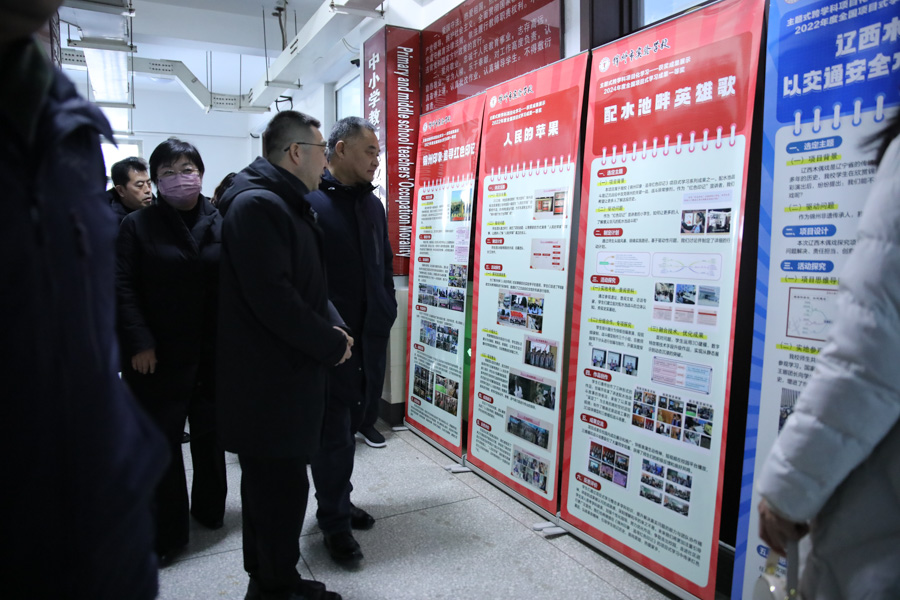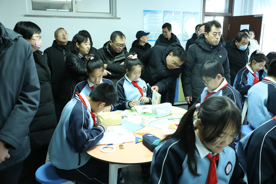 最后,调研团队走进“伟大胜利”主题展馆,考察红色教育与项目化学习融合成果。该展馆源于2021年“锦州印象·追寻红色印记”跨学科项目,由师生及家长共同打造,获评全国项目化学习成果展评一等奖。展馆以锦州战役精神为核心,设三大单元,近百件展品均为师生跨学科创作结晶,学生运用科学、信息科技、美术等知识设计展品、布置展馆,实现学以致用。该展馆不仅是校内德育阵地,还吸引了省内外及新疆等地师生前来交流,成为区域红色教育重要窗口。项目成果被《中国教师报》等权威媒体报道,彰显了我校在红色教育与实践育人融合方面的探索成效。