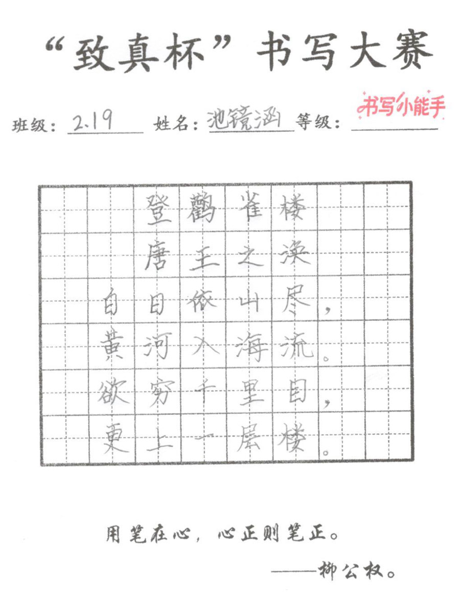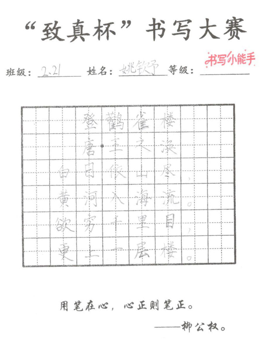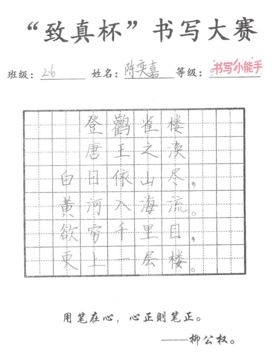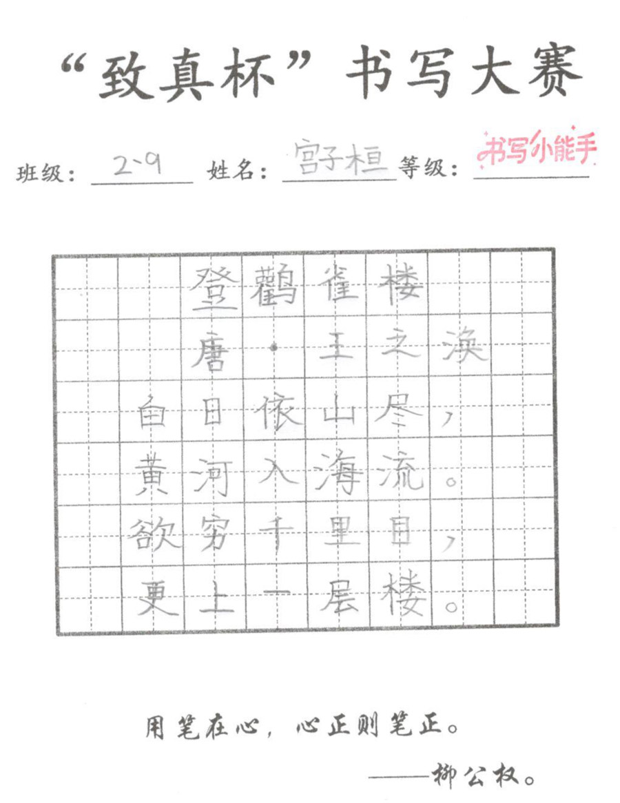 “致真杯”书写大赛优秀作品展(二年级)