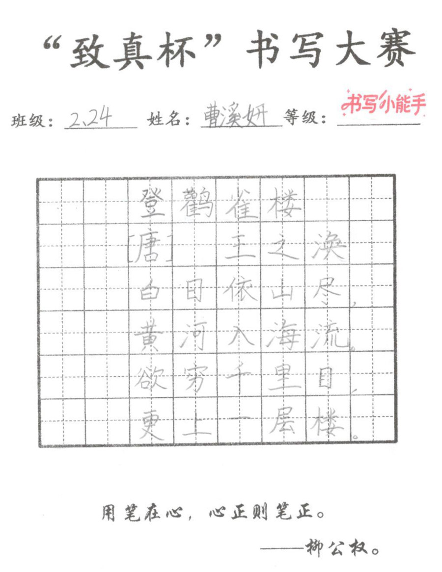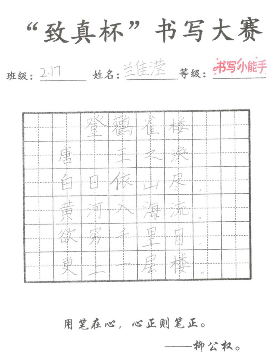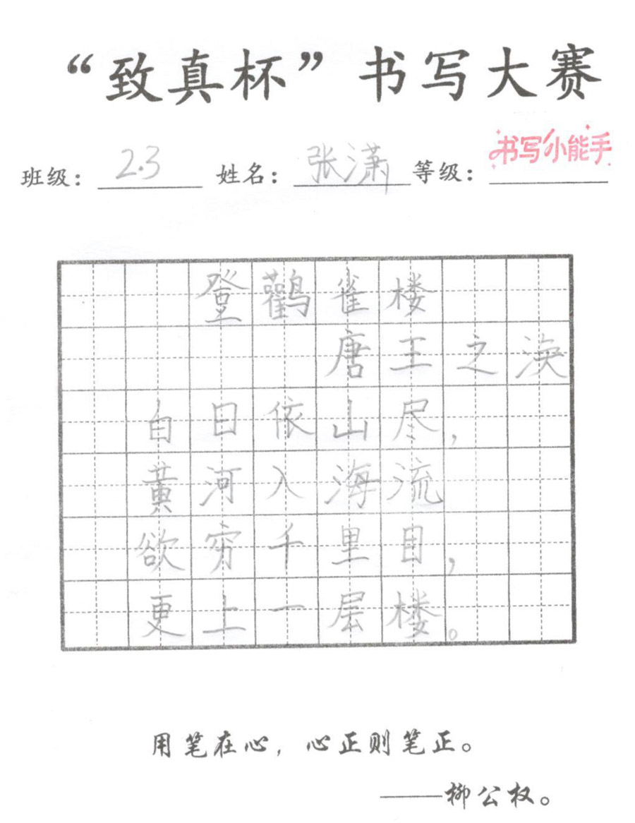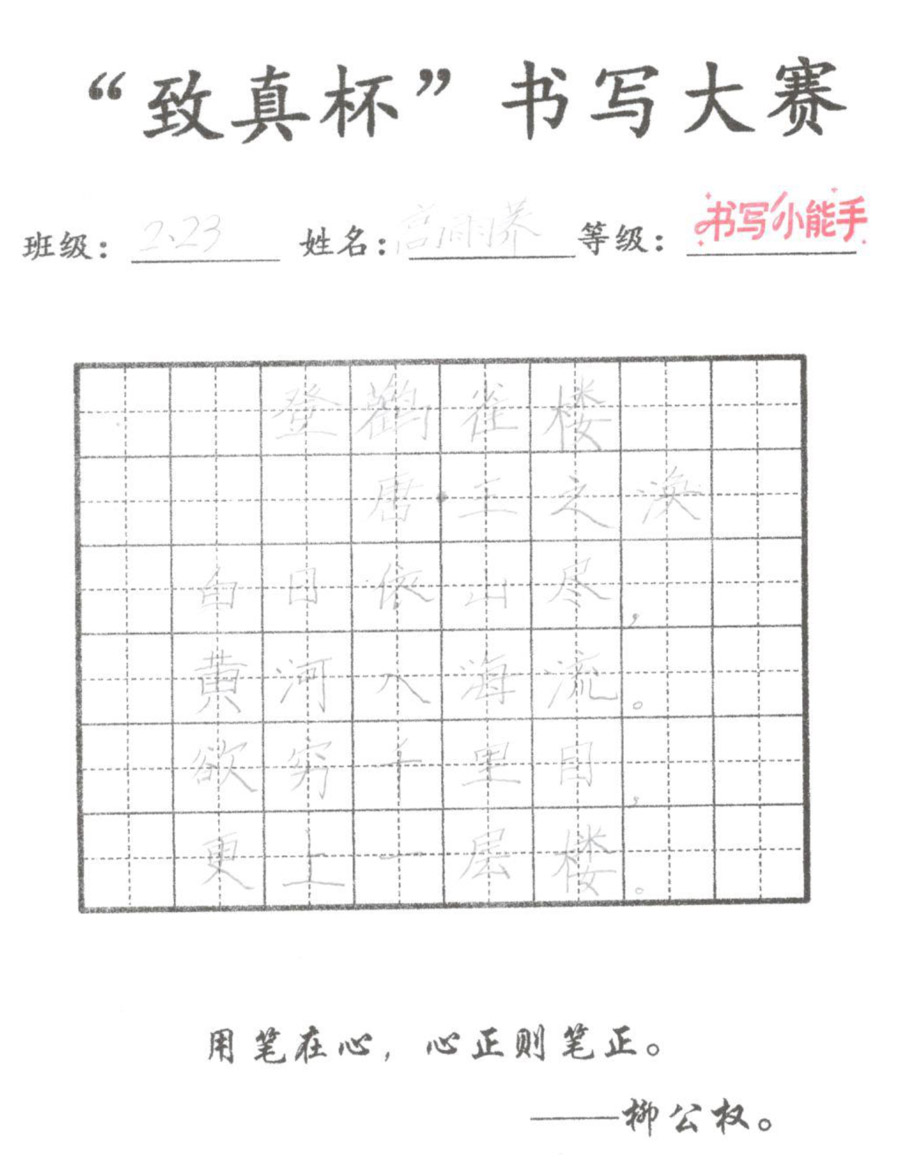 “致真杯”书写大赛优秀作品展(二年级)