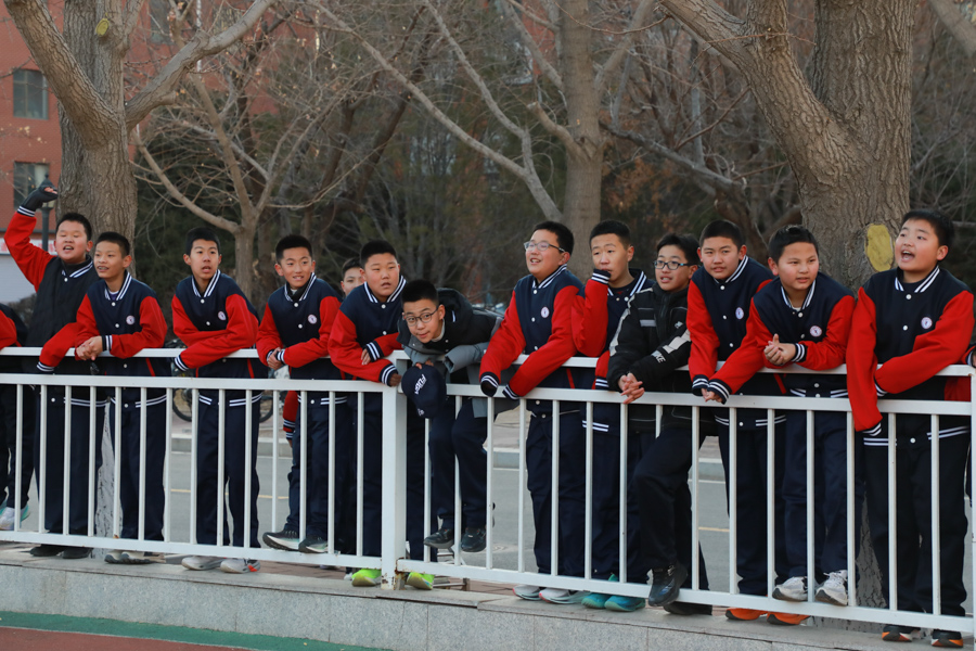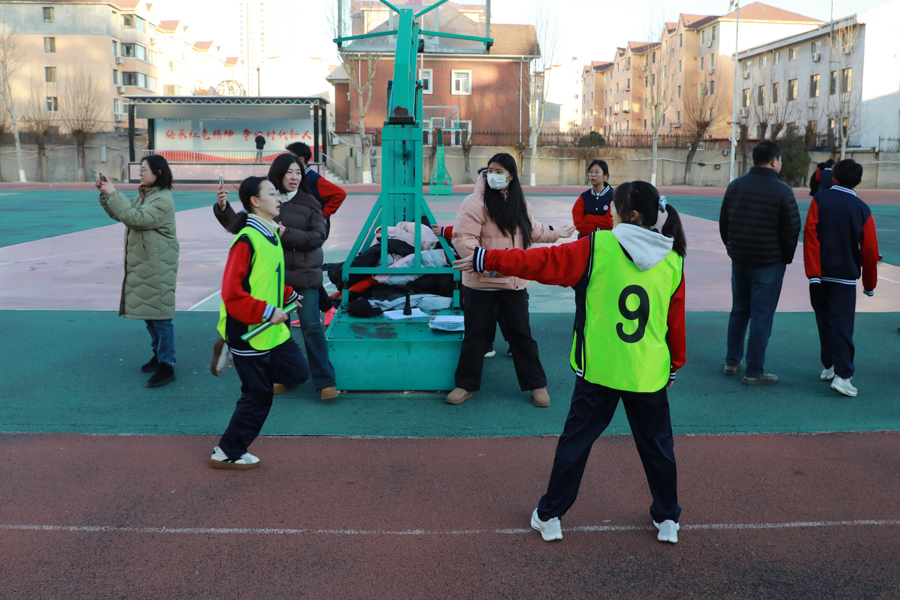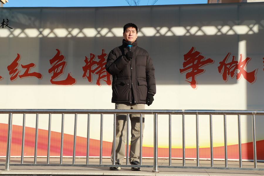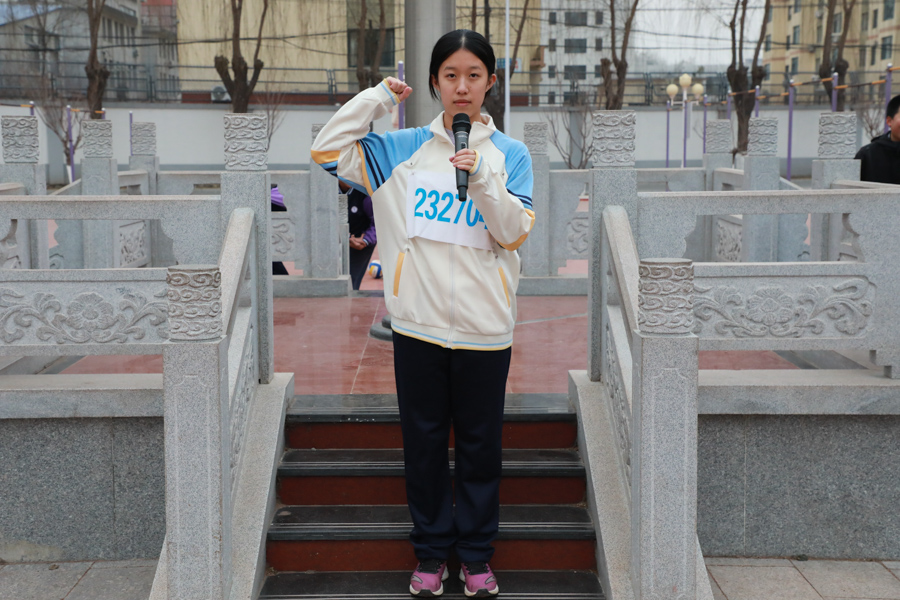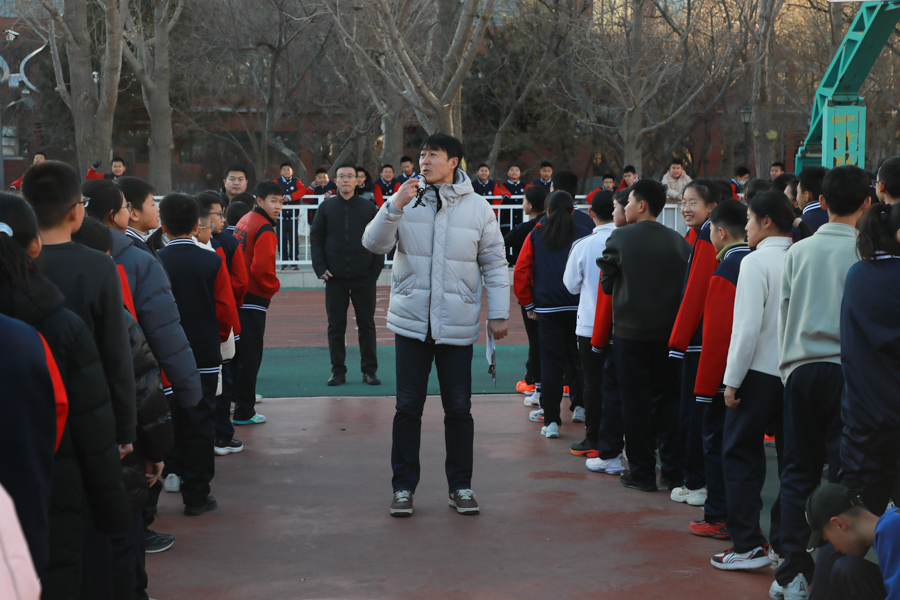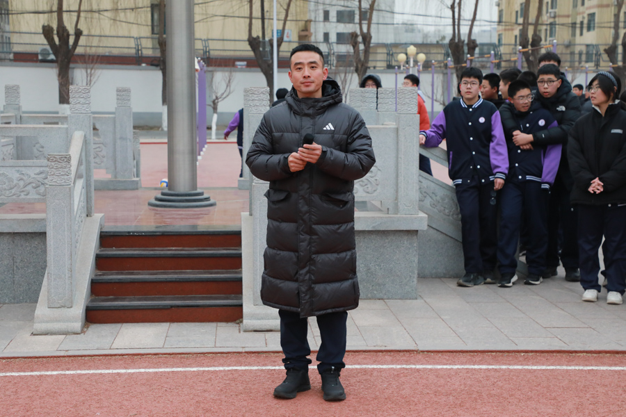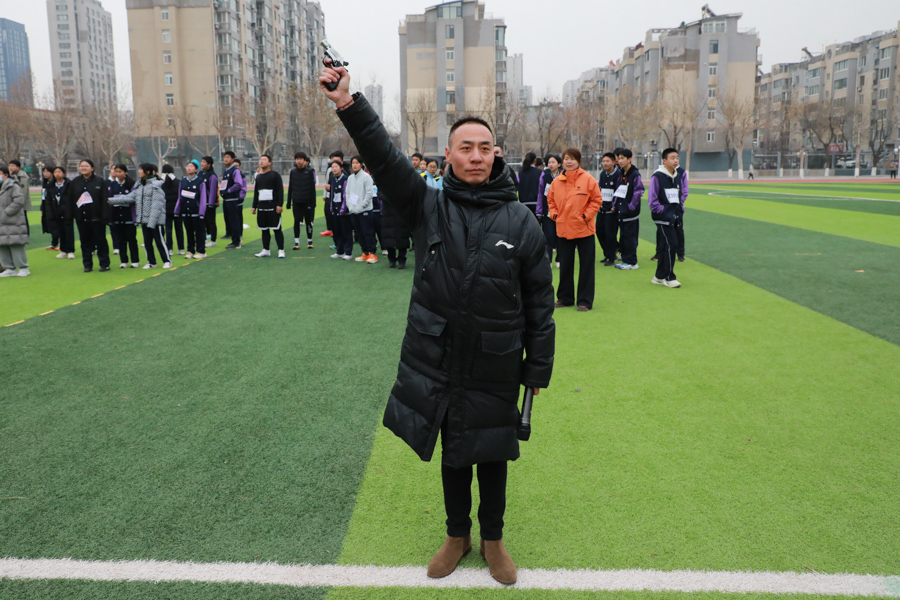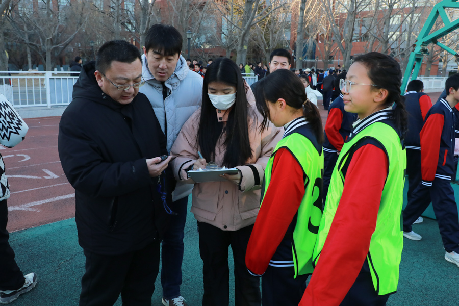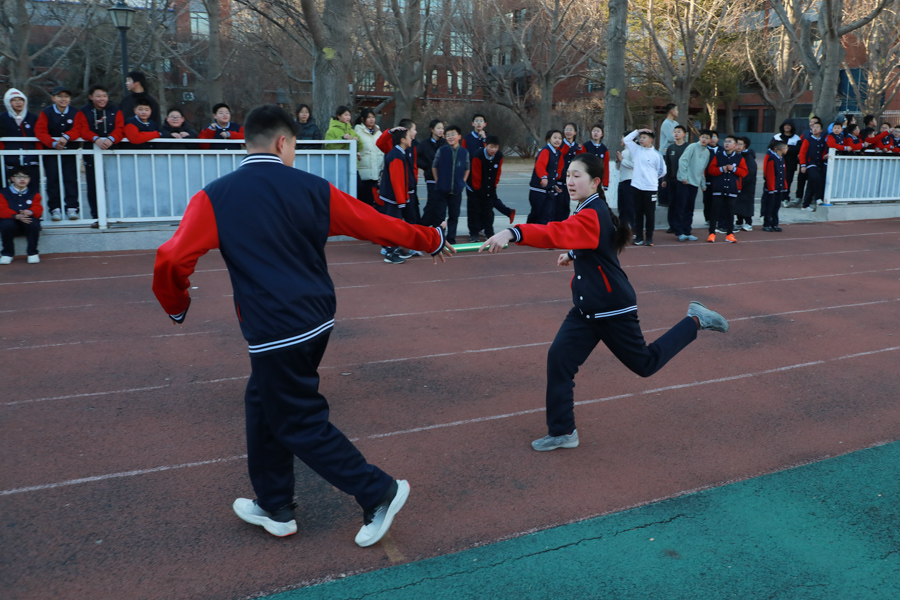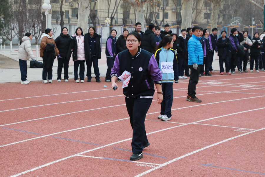 比赛前,学生代表徐心爱走上国旗台,在国旗下握紧拳头宣誓:“90年前,北平的哥哥姐姐们为了国家存亡走上街头;今天,我们用奔跑告诉他们——我们会记住历史,更会接过责任!”台下的同学们齐声呼应,掌声和呐喊声冲破了冬日的寂静。