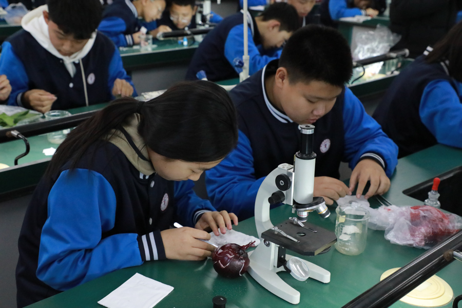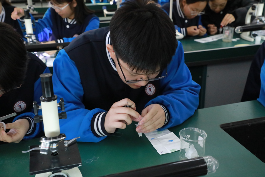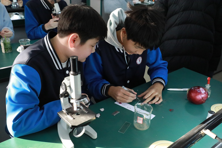 初中部科技节特色活动——“细胞星河,镜下寻踪”八年级生物实验技能大赛圆满落幕。这场以微观世界为舞台的竞赛,让学生们手执实验器材,在玻片之上雕琢细节,于目镜之中探寻生命的奥秘,不仅展现了扎实的生物实验功底,更让科学探究的种子在学生心中生根发芽。