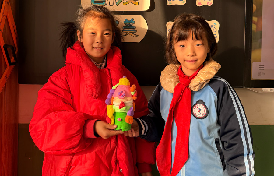 数学课堂学到的对称小知识,瞬间点燃了孩子们的创作热情!美术课上,杨旭老师带领着同学们运用刚学的本领,开启了“七彩对称花瓶”和“黏土瓶子改造”两大创作任务。他们先用“对折裁剪”的方法做出对称的瓶身,再用彩纸、扭扭棒细心装饰;之后又拿起废旧瓶子,用黏土捏出各种对称造型,把抽象的对称概念,变成了一个个色彩鲜艳、创意满满的小作品。