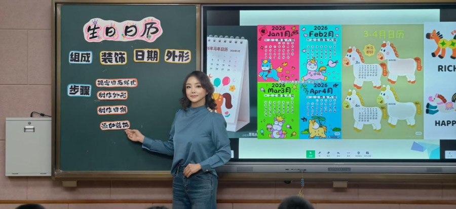 数学课堂直指核心问题:“如何推算出2026年生日的星期?”教学层层递进:首先梳理年、月、日之间的关系,接着借助平年与闰年的知识,计算2026年生日月份的总天数;最后引导学生根据该月第一天的星期,运用“星期循环规律”进行推演。原本抽象的数学知识因为与“我的生日”紧密结合,变得可操作、也更有意义。通过数学课的学习学生理解了年月日之间的关系,自然的引出了对设计月历卡的学习需求。