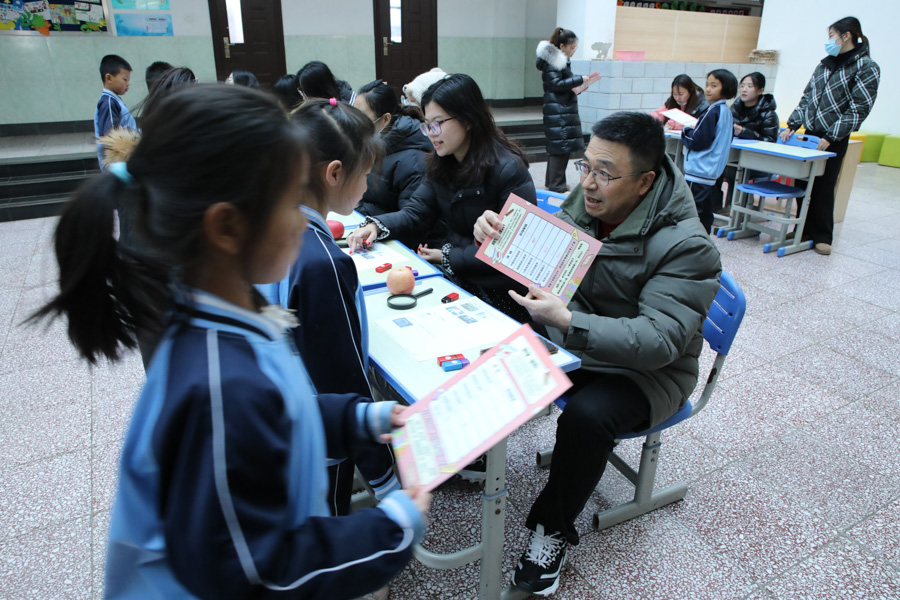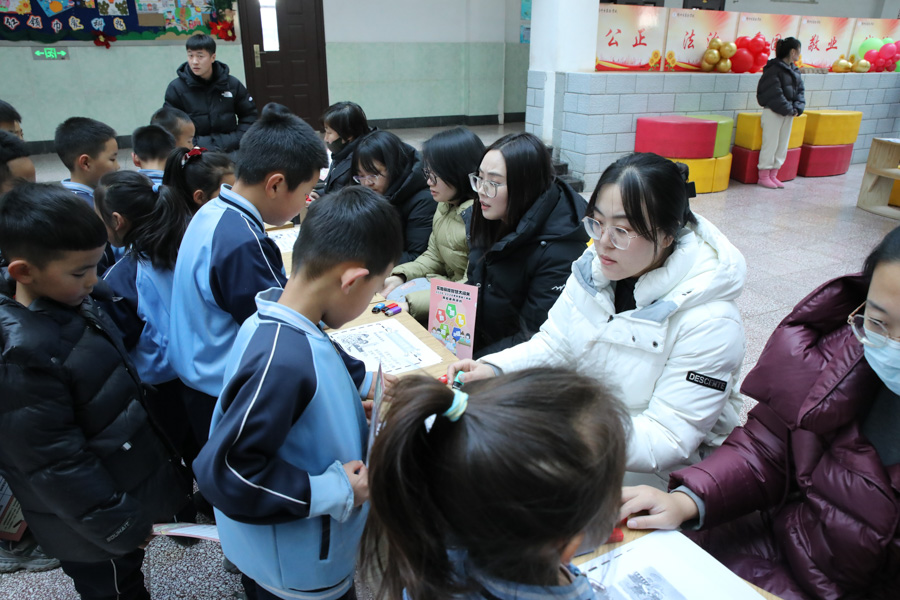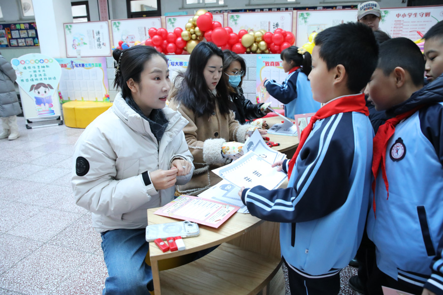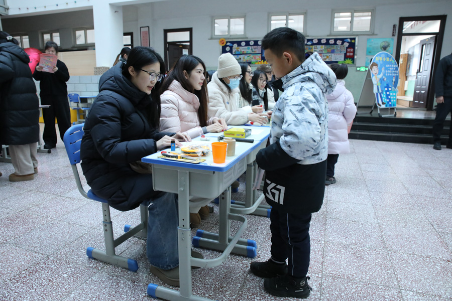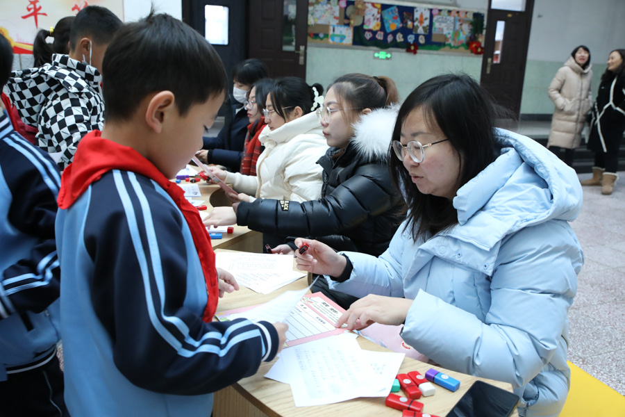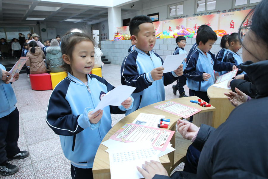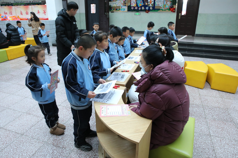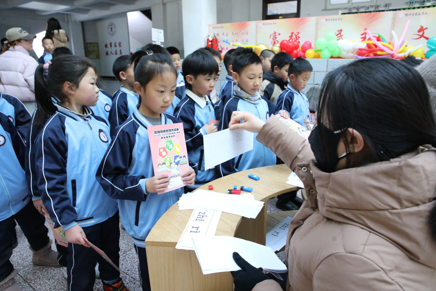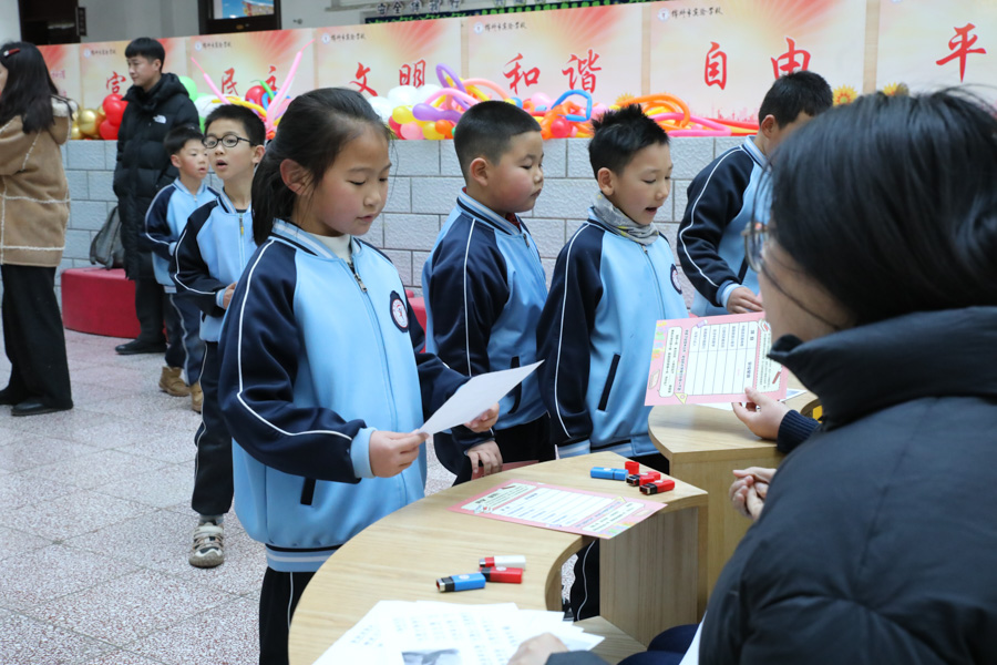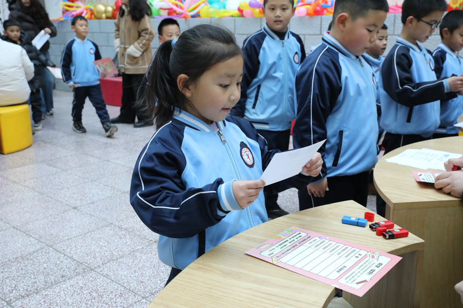 “叮铃铃——”上课铃变成了闯关集结号!1月7日,学苑校区一、二年级的小萌娃们举着花花绿绿的闯关卡,像一群叽叽喳喳的小麻雀,蹦蹦跳跳冲向“萌娃大闯关”的各个阵地啦!
