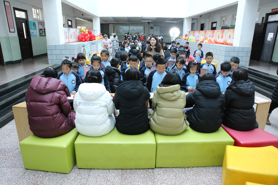 “朗读小剧场”热闹非凡!“一只乌鸦口渴了,到处找水喝。”“你真能干,小板凳一个比一个做得好。”“小时候,我最大的乐趣就是去外婆家。”抽到课文的小朋友瞬间变身“小小朗读者”,有的晃着小脑袋,有的攥着小拳头,时而放慢语速,时而声调上扬,他们把藏在文字里的欢喜、真情都融入了童言稚语中。