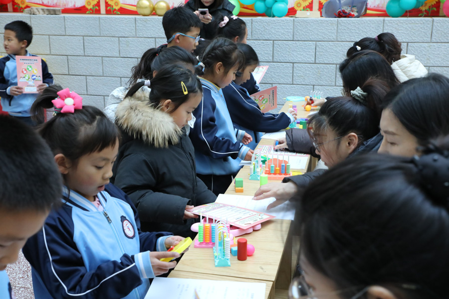“笑笑排队打饭,她排在第7,她前面有几人?”“淘气家居民楼一共9层,他家住3层,他家楼上有几层?”“一张100元可以换几张20元呢?”生活中的数学问题也难不倒孩子们,成功的喜悦洋溢在稚嫩的脸上,孩子们在闯关中明白了“数学源于生活,用于生活”的道理。
